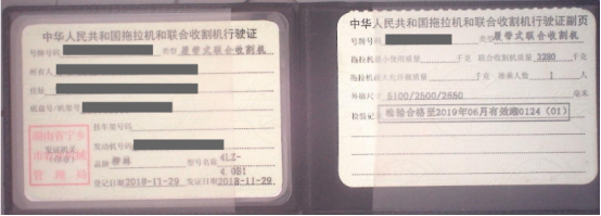 3、所有人提交的证明、凭证与拖拉机、联合收割机相符;