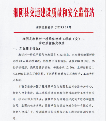 《公路水运工程质量监督管理规定》(中华人民共和国交通运输部令〔2017〕第28号)第二十五条 公路水运工程交工验收前,建设单位应当组织对工程质量是否合格进行检测,出具交工验收质量检测报告,连同设计单位出具的工程设计符合性评价意见、监理单位提交的工程质量评定或者评估报告一并提交交通运输主管部门委托的建设工程质量监督机构。交通运输主管部门委托的建设工程质量监督机构应当对建设单位提交的报告材料进行审核,并对工程质量进行验证性检测,出具工程交工质量核验意见。工程交工质量核验意见应当包括交工验收质量检测工作组织、质量评定或者评估程序执行、监督管理过程中发现的质量问题整改以及工程质量验证性检测结果等情况。第二十六条 公路水运工程竣工验收前,交通运输主管部门委托的建设工程质量监督机构应当根据交通运输主管部门拟定的验收工作计划,组织对工程质量进行复测,并出具项目工程质量鉴定报告,明确工程质量水平;同时出具项目工程质量监督管理工作报告,对项目建设期质量监督管理工作进行全面总结。工程质量鉴定报告应当以工程交工质量核验意见为参考,包括交工遗留问题和试运行期间出现的质量问题及整改、是否存在影响工程正常使用的质量缺陷、工程质量用户满意度调查及工程质量复测和鉴定结论等情况。交通运输主管部门委托的建设工程质量监督机构应当将项目工程质量鉴定报告和项目工程质量监督管理工作报告提交负责组织竣工验收的交通运输主管部门。《湖南省交通建设工程质量与安全生产条例》(暂无)第十七条 交通建设工程交工验收前,质安监管机构应当出具检测意见。未经检测或者检测不合格的,建设单位不得组织交工验收。交通建设工程交工验收合格后,建设单位应当按照国家规定及时向交通运输主管部门申请竣工验收。交通建设工程竣工验收前,质安监管机构应当出具质量鉴定报告。未经质量鉴定或者质量鉴定不合格的,交通运输主管部门不得组织竣工验收。质安监管机构对检测意见和质量鉴定报告负责。 |