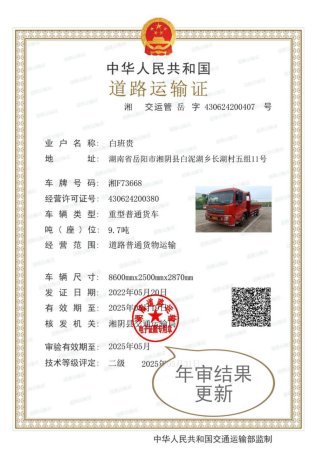 道路货运车辆: 道路货运业户拟转籍或过户已办理《道路运输证》的客运车辆。 |