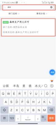 8.在上方搜索栏搜索“森林”等关键词,点击要办理的事项