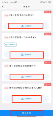 11.点击“上传材料”、“在线填表”,将资料补充完整,点击“提交申报”即可 |