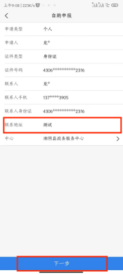 10.个人信息系统会自动获取,只需填写联系地址,点击“下一步” |