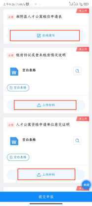 10.填写好在线表单,点击上传材料,点击“提交申报”即可 |