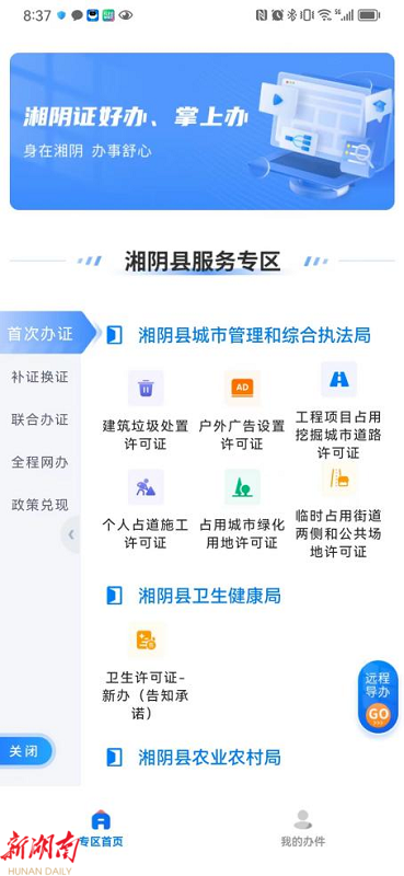 自“湘易办”超级服务端上线以来,湘阴县积极响应、迅速部署,在“湘易办”APP上线全省首个县级服务专区——“湘阴证好办、掌上办”专区,其中,危险货物港口作业许可证、临时占用城市绿化用地许可证、卫生许可证、农业经营许可证、新生儿出生一件事(全国通办情形)等20余个高频服务事项全程网办接件近1000件,危险货物港口作业许可证明、户外广告设置等10余个许可证照电子证照(或证明)发放累计近400件,真正实现了由“最多跑一次”向“一次都不跑”的转变。