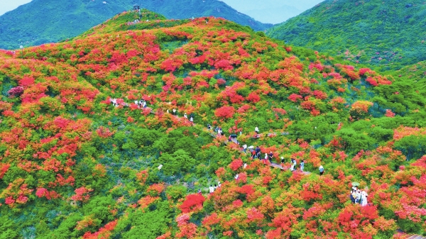 “39种杜鹃花品种中主要以映山红、云锦杜鹃、鹿角杜鹃、满山红为主,以灯笼杜鹃、羊踯躅、猴头黄山、杜鹃等为辅。”孔觉表示,经过合理优化布局,大围山已经形成以映山红为主、其他品种杜鹃花为辅的组成格局,红色杜鹃“唱主角”、各色杜鹃花点缀,观赏效果颇佳。而且,通过优化和梯度设计,杜鹃花期延长到1个月,赏花期从每年4月上中旬延续到5月中下旬,丰富了观赏性。