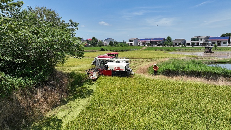 走进石塘镇利民新村鸿昌农业生态种植专业合作社,伴随着“隆隆”响声,收割机开足马力穿行在稻田里,切割、输送、脱粒、清选、秸秆切碎还田、装车……机械化作业为水稻收割按下“快进键”,来自省、市、县的水稻专家们也正在合作社基地的高产高效示范田测产。