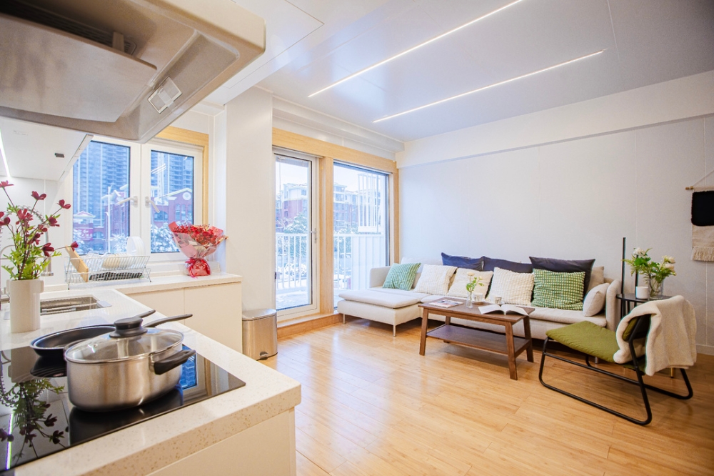 走进公寓,未来城市建筑安全、节能理念展现得淋漓尽致:不使用混凝土,楼板采用远大独创的超强超轻“不锈钢芯板”,外墙双层钢板及22厘米岩棉,4层超白玻,设计寿命超数百年,可拆除异地复建;24小时新风输送,内嵌180°飘窗,每户设安全室,每层加设“楼外火警逃生梯”,电梯升降自发电……