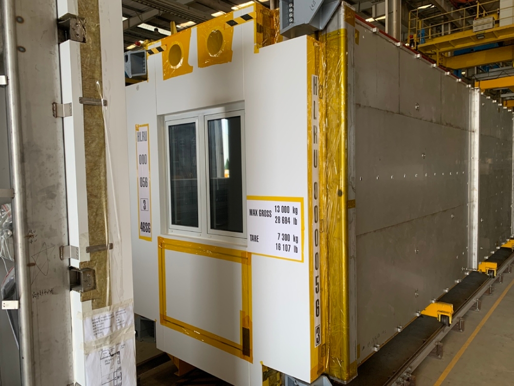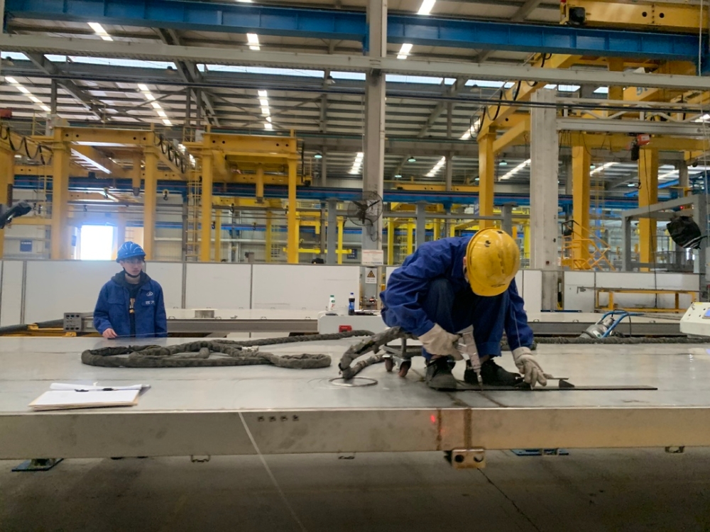 在远大可建科技有限公司车间,记者看到,厂内自动化流水线由96个机器人、60套激光焊系统、200多台高精度装备构成。已经完工的“活楼”模块贴上了英文重量标识,即将采用40英尺标准集装箱尺寸运输,发往菲律宾。