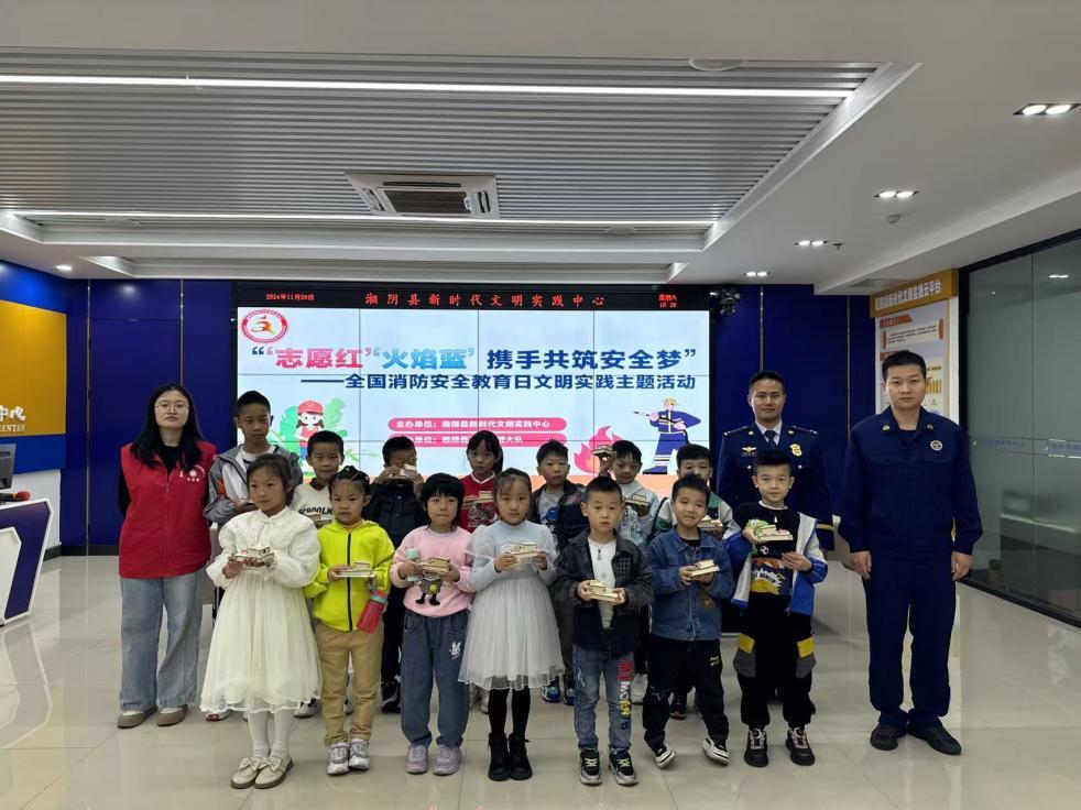 湖南日报·新湖南客户端11月9日讯(通讯员 徐婷)11月9日,湘阴县新时代文明实践中心联合该县消防救援大队开展“‘志愿红’‘火焰蓝’ 携手共筑安全梦”全国消防安全教育日文明实践主题活动,旨在深入普及消防安全知识,提升儿童的消防安全意识和自我保护能力。