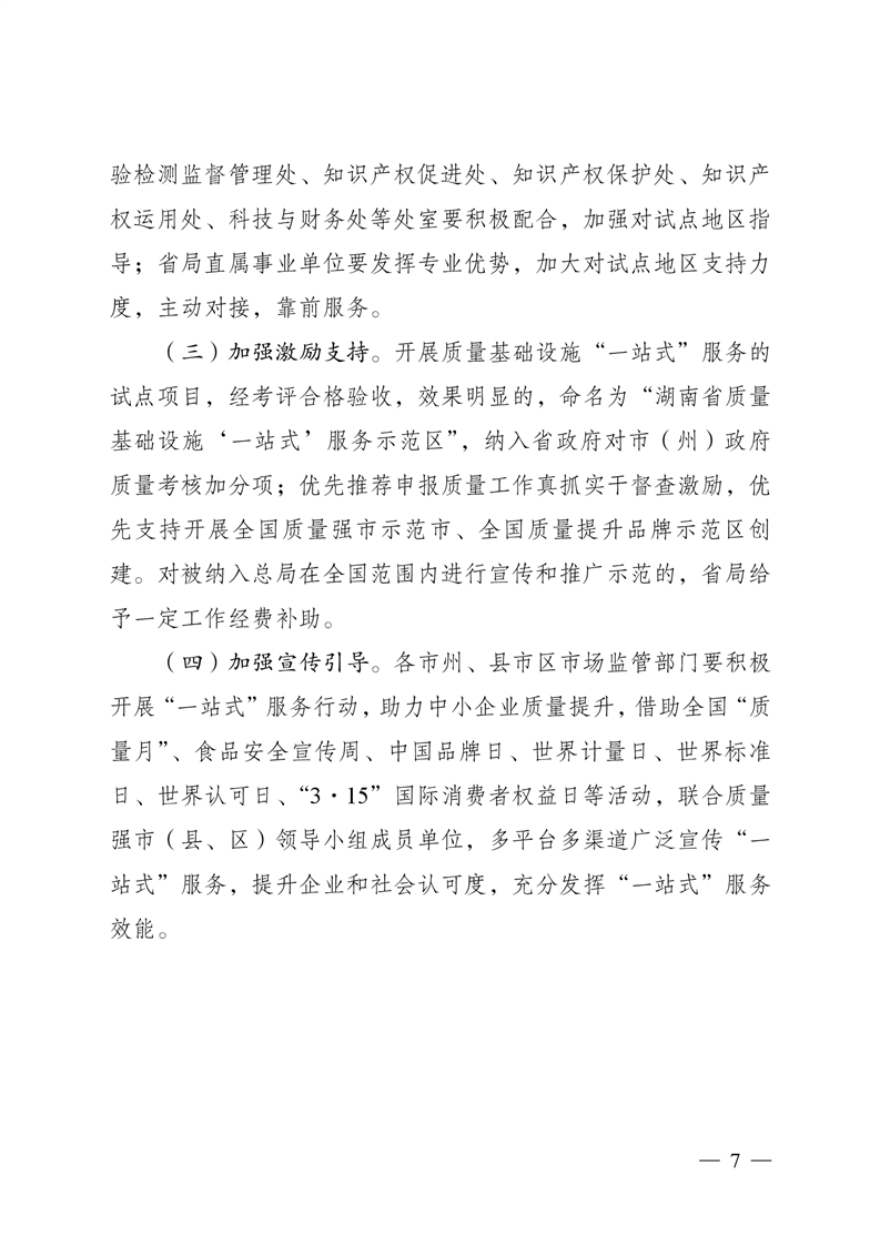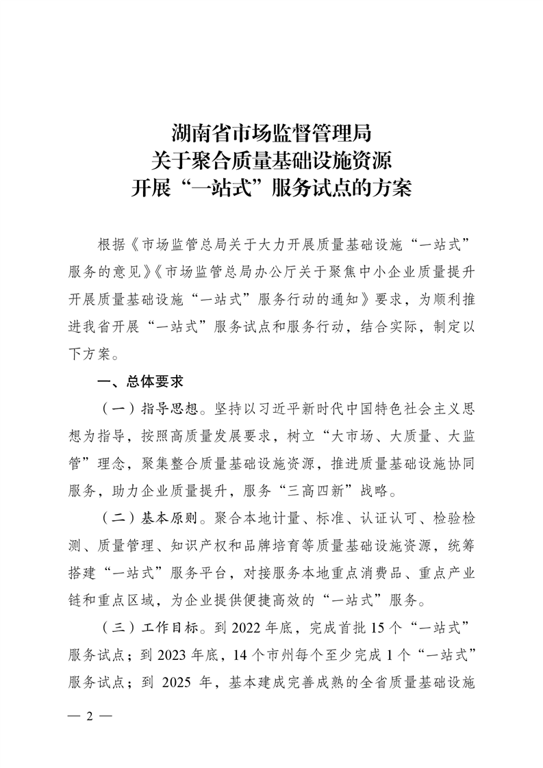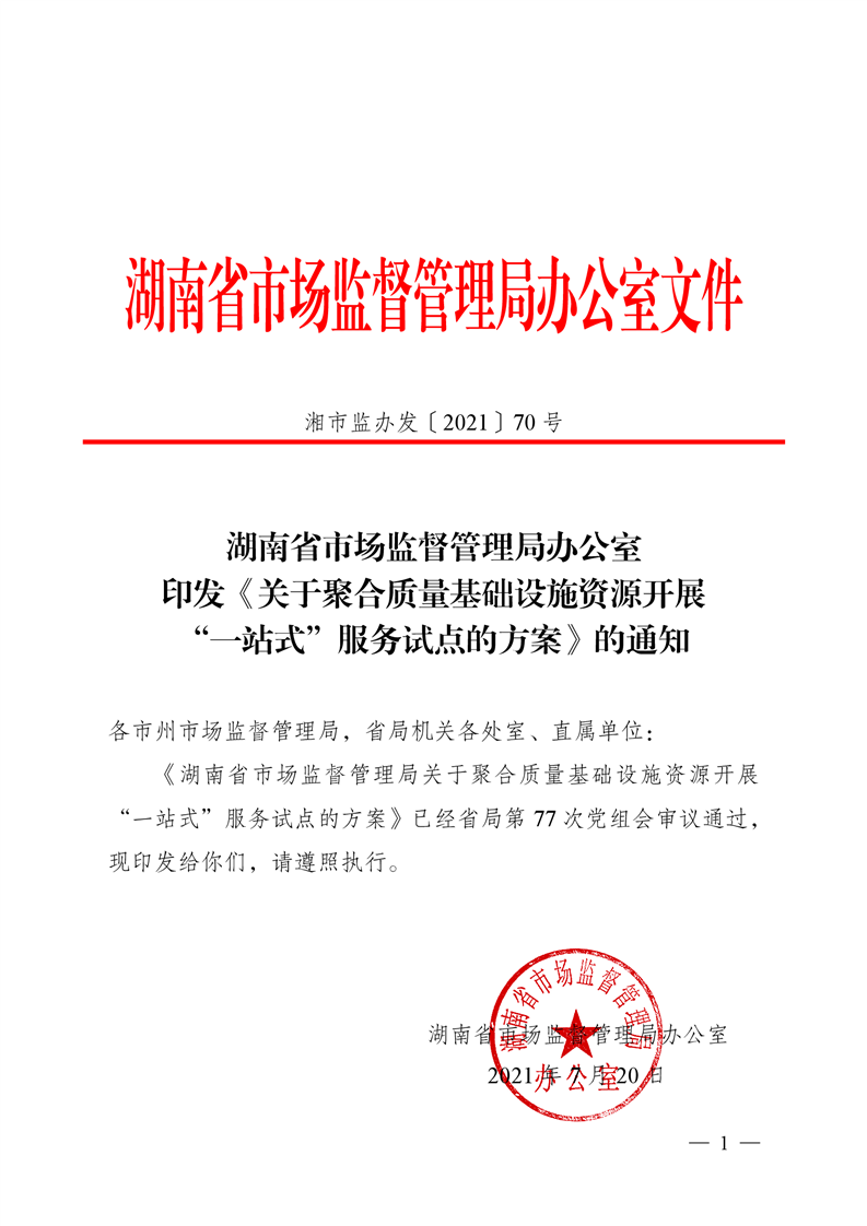 湖南省市场监督管理局办公室 印发《关于聚合质量基础设施资源开展 “一站式”服务试点的方案》的通知