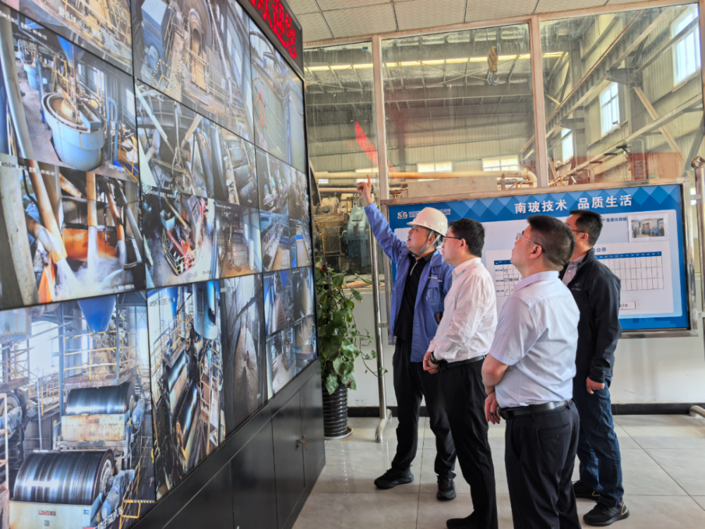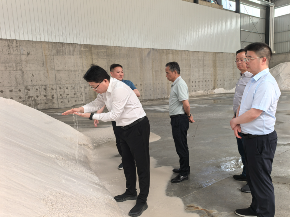 ▲刘世奇在安徽南玻石英砂有限公司了解石英砂产业市场布局规划等情况。