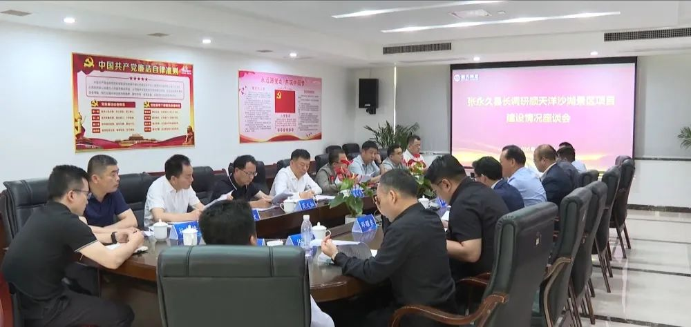 4月14日,县委副书记、县长张永久调度顺天洋沙湖集团项目建设情况,就后段集团发展建设集众智、定良策。副县长刘江波,县政府办主任范文灿参加。