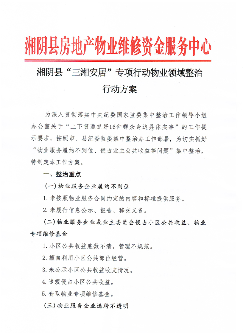 湘阴县”三湘安居“专项行动物业领域整治行动方案
