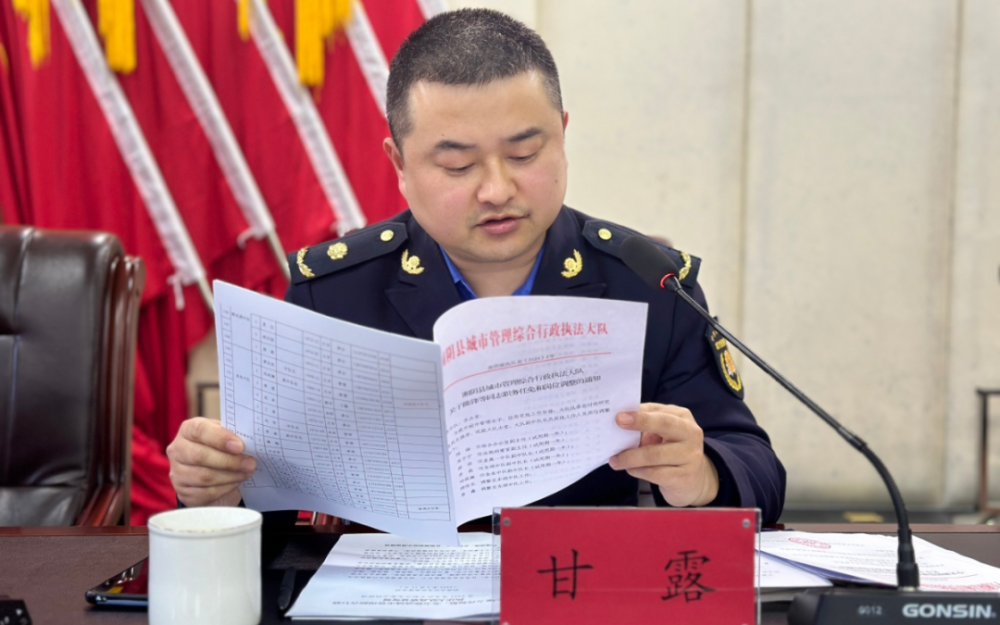 湘阴县城市管理综合行政执法大队大队长陈世明总结了2023年工作成效,安排部署2024年重点任务并强调了三点意见。