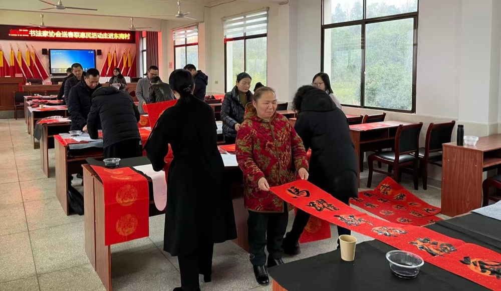 2月5日,东塘镇东南村组织开展送春联文化惠民活动,以笔墨寄情,为群众送上新春祝福,营造喜庆祥和的节日氛围。