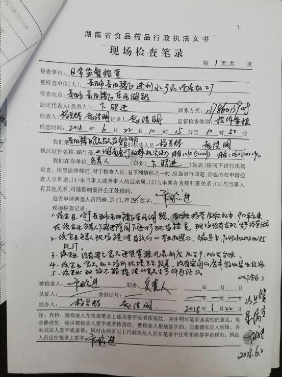 | 回复内容: | 6月22日,我局接到投诉后,将信件转至岳阳楼区食品药品监管局处理。该局收到信件后,高度重视,立即安排部署,于当日上午10时联合街道办事处和岳阳楼区环保分局,对岳阳楼区进利水产品冷冻加工厂进行专项检查。现场检查中,发现存在无《食品生产许可证》,环境卫生差等情况(见现场检查笔录)。联合执法人员当场下达《责令改正通知书》,提出整改意见并责令该工厂立即停止生产经营活动。目前,经岳阳楼区食药监管局执法人员跟踪巡查,该工厂一直处于停产状态。 ![]()
