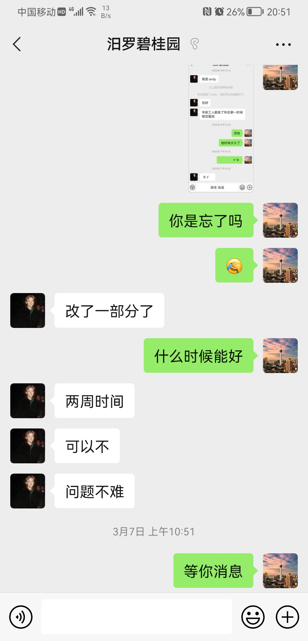 汨罗碧桂园交房质量达不到交房标准,拖延整改,并强制收取物业费! 我于2018年10月购买了汨罗碧桂园的房子,合同交房日期为2021年9月30日前,到期是有通知去收房,我也按时去了,但房子装修质量根本达不到交房标准,只是为了不违约硬着头皮通知交房,后面开发商答应整改后再通知收房,但这个整个时间遥遥无期,一拖再拖,对接人员换了几个,直至今天2022年5月28都没有整改好。今天打算收房算了,不能再被他们耗着浪费时间,毕竟房子是买来住的,各项手续办完,签完字,按完手印,给了我们资料和钥匙,然后被告知需要缴从2021年9月30日至今天的物业费,这让我们不能接受,明明是开发商的房子质量问题,达不到交房标准耽误我们业主的入住时间不说,反而还被要求如果不补缴物业费,就不给房子钥匙,这特别让人气愤,而且工作人员态度差,互相推萎,说物业只按合同交房时间收取物业费,房子质量好坏不关他们的事,想拿钥匙,想进来装修就必须补缴物业费。请政府领导评评理,这钱该缴吗???老百姓活该被压榨吗? 附件1:Screenshot_20220528_204923_com.tencent.mm.jpg 附件2:Screenshot_20220528_205032_com.tencent.mm.jpg |