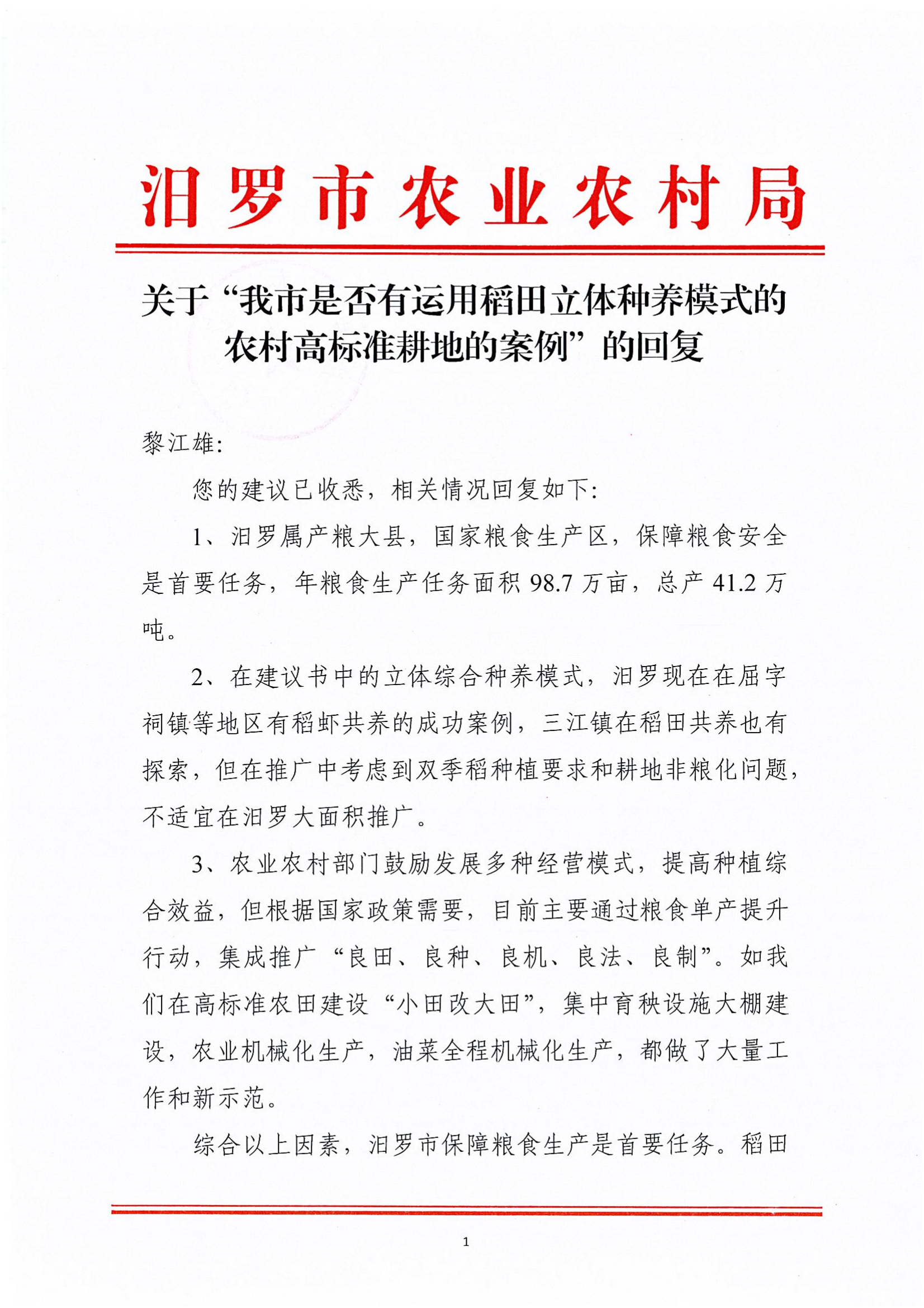 咨询书 致:汨罗市农业局 主题:关于稻田立体种养高标准耕地案例及政府牵头普及模式的咨询 尊敬的市农业局领导: 您好! 随着国家对农业现代化的不断推进和乡村振兴战略的深入实施,提高农业生产效益、增加农民收入已成为当前农业工作的重点。稻田立体种养作为一种生态循环农业发展模式,不仅能够实现土地资源的集约、高效利用,还能有效提升农产品品质,拓宽农民增收渠道。为此,我们特向贵局咨询有关我市稻田立体种养高标准耕地的相关情况,并探讨由政府牵头带动全市各乡村共同普及该模式的可行性。 一、咨询内容