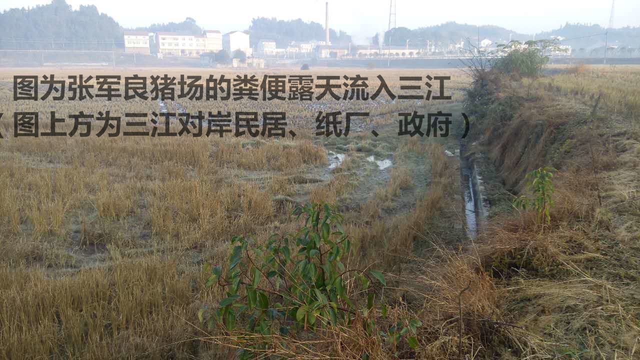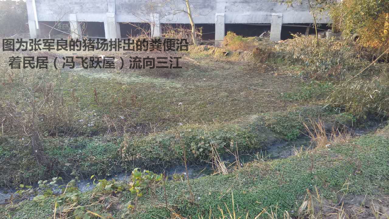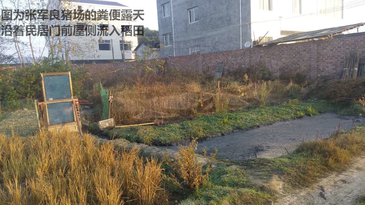 强烈要求政府强行拆除并关闭花桥村张军良的非法养猪场 汨罗市环保局、三江镇人民政府: 花桥村七组张军良的小型简陋养猪场,是在上世纪九十年代末在自己的旧住宅违法改建的。改建时,邻居极力劝阻无效。住在其后面离猪场不到 张军良的违建简陋猪场没有粪便处理设施,也没有污水处理设施,更没有空气净化设施。粪便污水沿着路边、邻居的门前流到稻田里、稻田只能丢荒,沿露天水沟一直流到花桥河里,是一个地地道道严重污染环境的非法养猪场。请看附件照片。 如今随着社会进步,人们对环境保护有发言权了。因此我们报告政府,请求政府关注民生、关注环境,给三江人民一个良好的生活环境,给回乡过节的人感觉到三江有良好的空气,给花桥村七组的村民有一个良好的生存空间。不然的话,创建“最美三江”就是一句空话。
