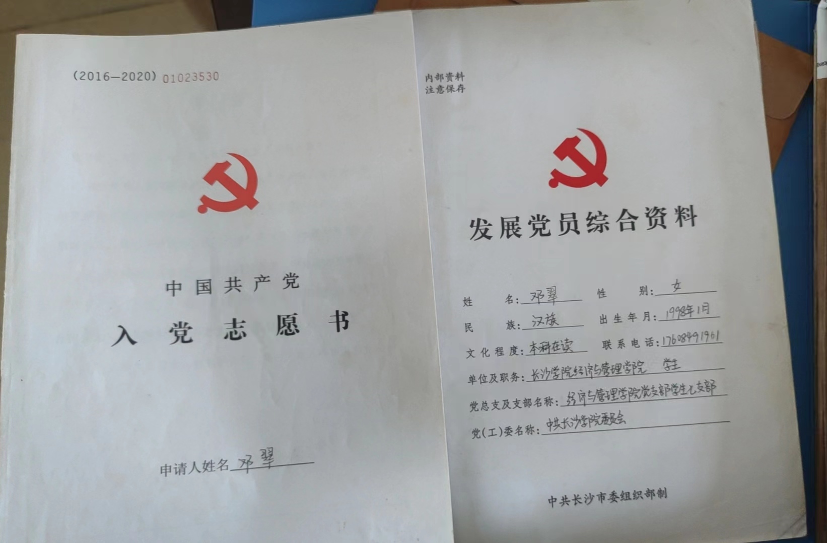 2015年9月-2019年6月我就读于长沙学院,在校期间递交了入党申请书,并于2018年5月22日正式批准成为共产党员。