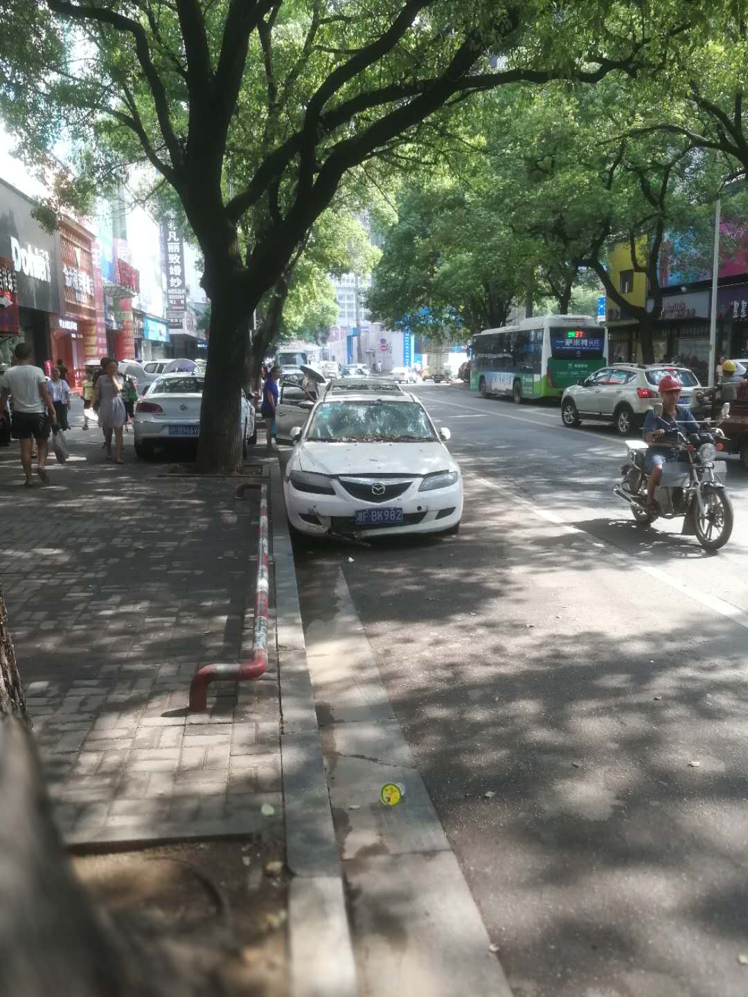 云梦路和南辅道连接处往南100米的马路上,整天车流如织。一辆挂牌为(湘F BK982)白色马自达小车被人弃路边近两个月了,我一月前也曾电话12345反应过情况,“有关部门”这儿统统都不和该情况有关了!估计是罚不到谁的款了吧?太现实了