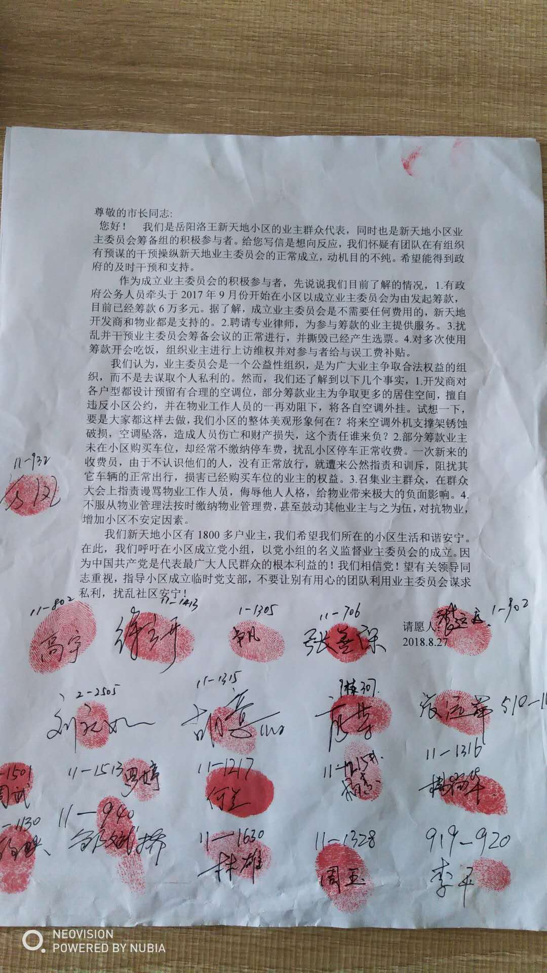 洛王新天地小区位于冷水铺路与洛王路交汇处,目前已基本入住,共有住户1800余户。裴先生反映的情况基本属实。关于有政府公务人员发动筹款的情况,该问题属于个人行为,并非政府行为,对筹款没有强制性要求,完全由居民自愿。在洛王办事处得知情况后,立即告知筹款发起人,务必将财务公开,如利用筹款谋求私利,将上报纪检部门依法处理;关于空调外挂的现象,已由洛王办事处安监站联合城管部门上门进行劝导,如不能消除安全隐患,将采取强制执法行动;关于目前物业管理的问题,据调查了解,物业管理公司和部分业主就小区管理方面存在意见分歧;关于成立小区党小组的问题,目前已安排专人进行党员信息摸底,拟将成立党小组,以加强小区的安全稳定和管理。新天地小区属地主管单位洛王街道办事处认为:小区存在诸多矛盾,且小区业主委员会应当代表大多数业主的利益,应当尽快成立业主委员会并设立党小组。目前,洛王办事处正在积极协调推动成立业主委员会,待党员信息摸底工作完成后,依法依规成立党小组。