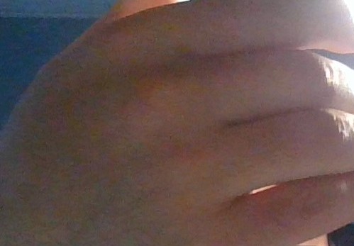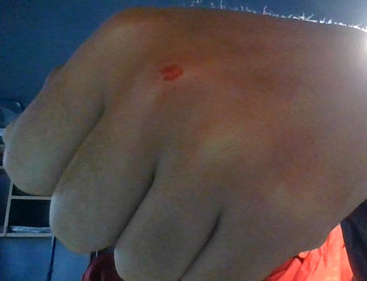 今天和同学坐公交回学校途中,我正握着公交车上吊着的握把,这时突然刹车的时候我身体突然前倾,我是一只手抓住吊把,一只手扶着车上的座位的,接着我感到握着吊把的手外侧突然被划了一下,我当时看了一下,只是被刮了条白印子,回宿舍后才发现血液已经里流到手背约一个一毛硬币大小,我当时没有注意吊把形状,个人估计是由于把手制造工艺中,会使中间有细小凸起的原因。