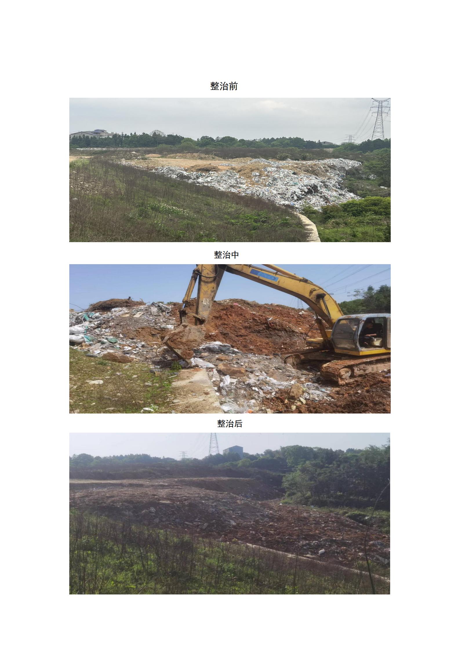 4月15日上午管理处领导现场调度,安排挖机、运输车对建筑垃圾进行清运及覆土复绿。