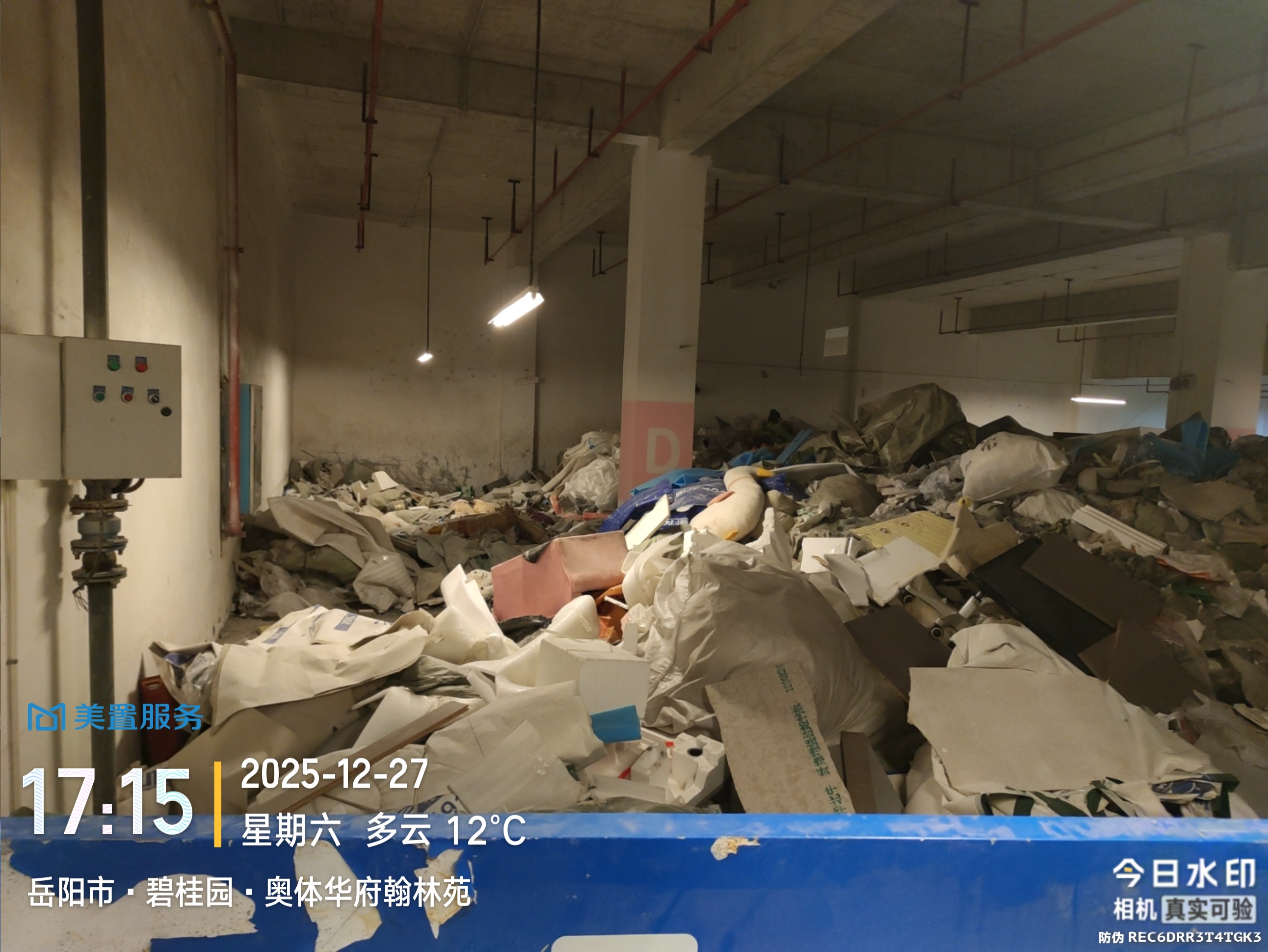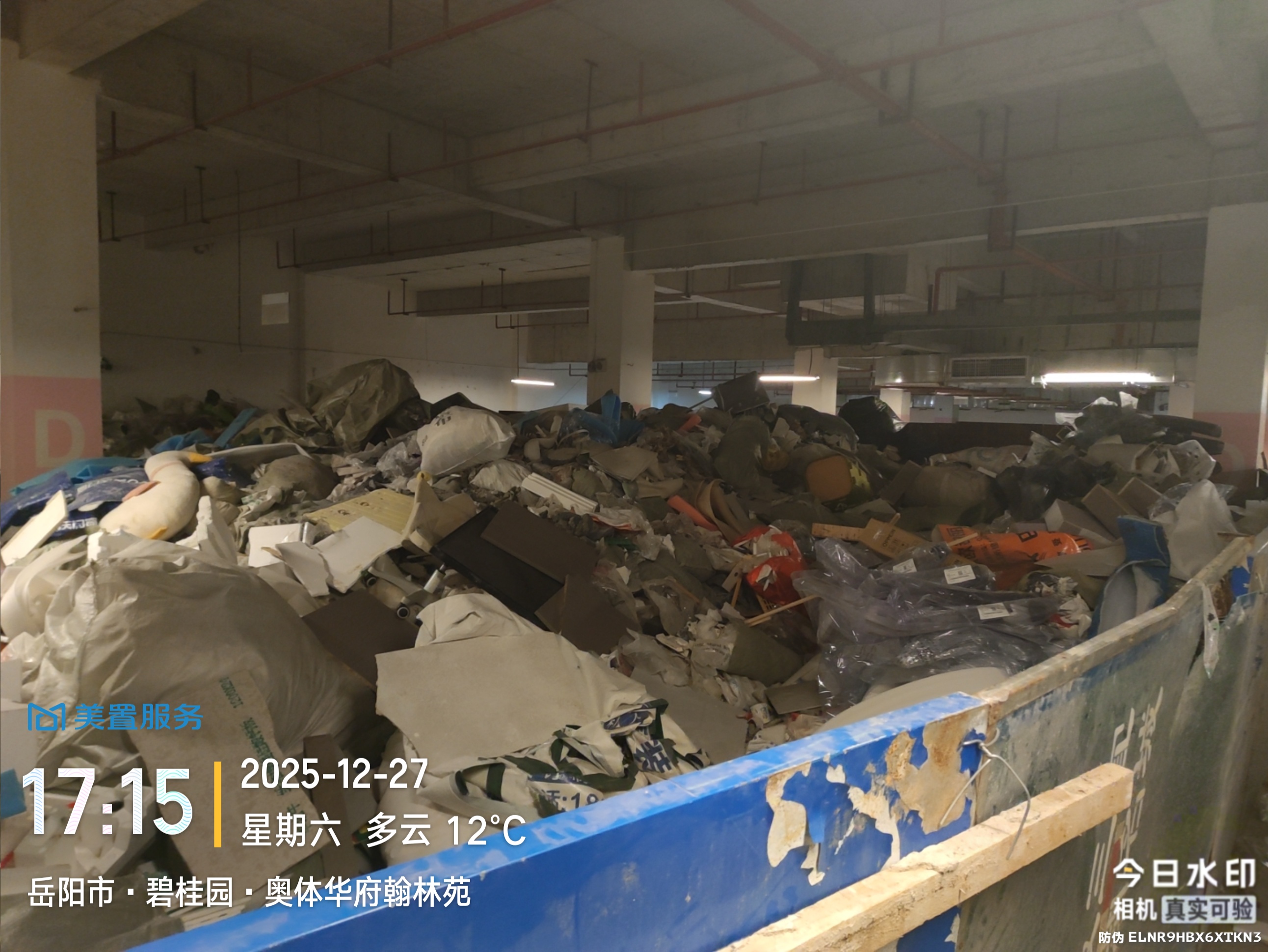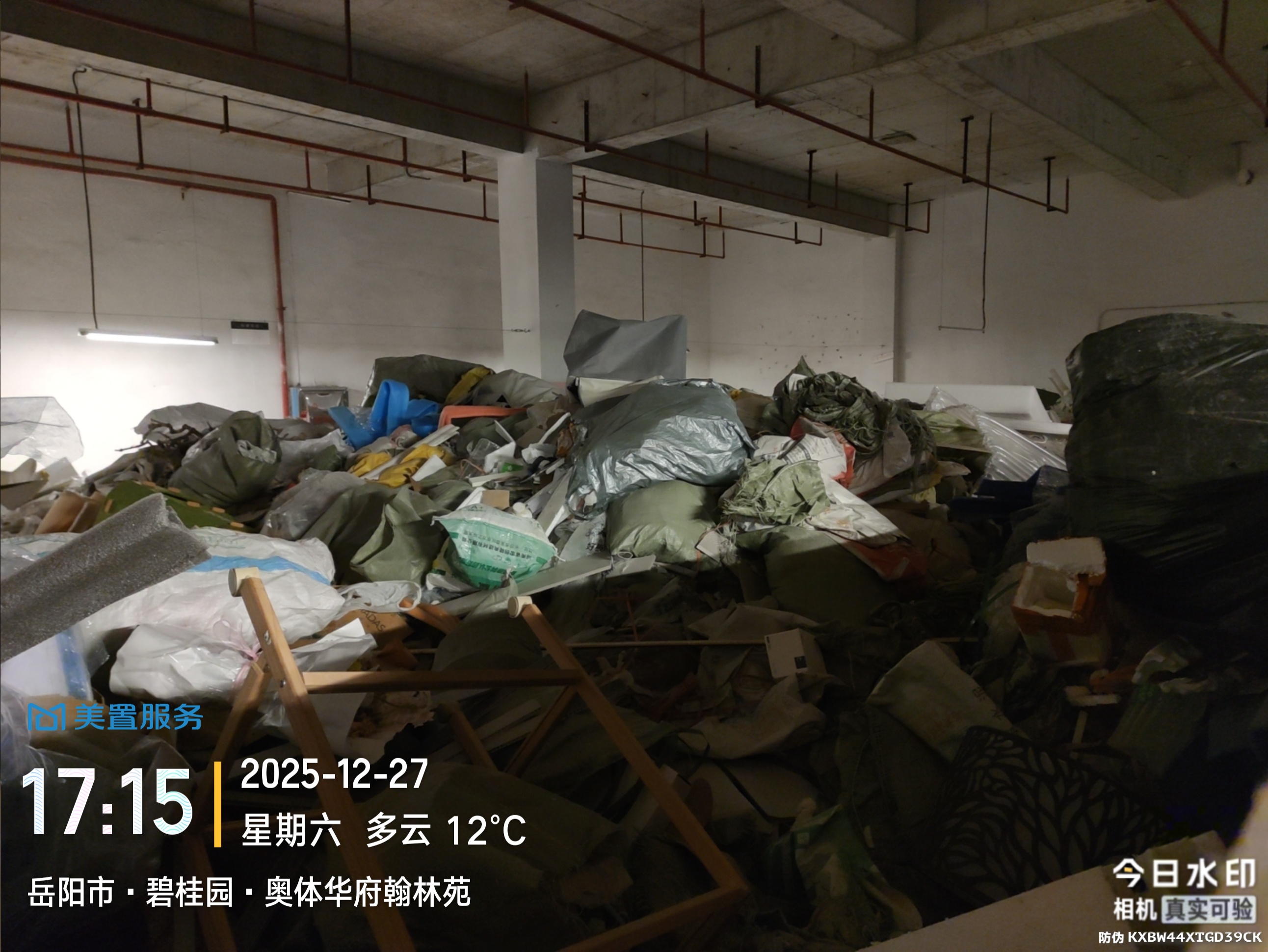 经核实,您所反映的建筑垃圾堆放地点为奥体华府小区地下车库装修垃圾暂存点。物业公司已于1月28日将堆放于此处的装修垃圾清理完毕,相关围挡也已拆除。