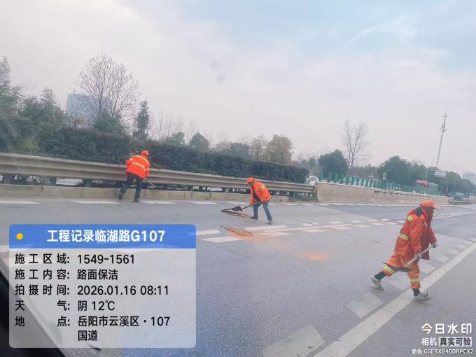 附件:2026年1月15日G107临湖公路路段(含天马加油站路段)养护作业现场照片