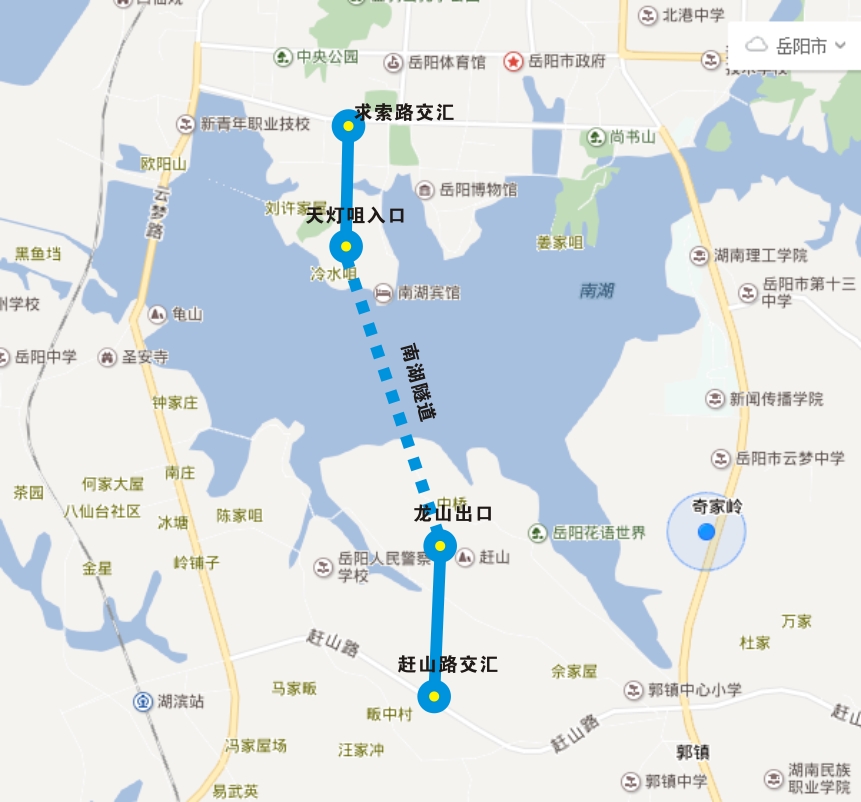 关于修建东西快速通道的建议, 我局会结合实际情况予以考虑采纳。根据岳阳市城市总体规划,目前暂未考虑修建南湖湖底隧道。