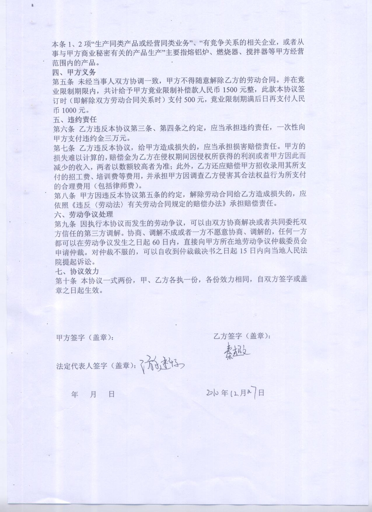 本人于2010年9月13日在岳阳钟鼎热工电磁科技有限公司签订了第一份保密协议,那是还在这家公司上班。