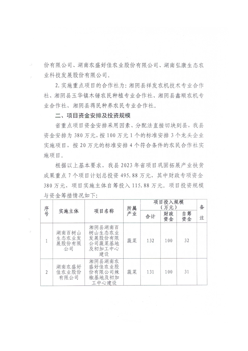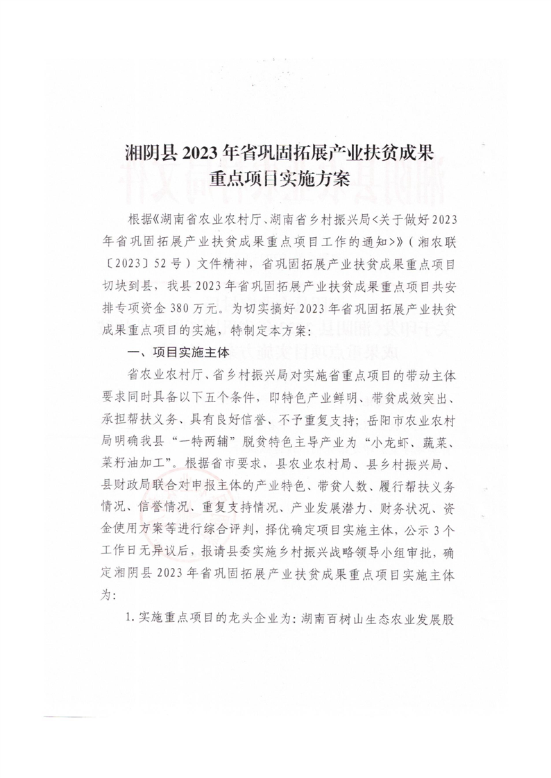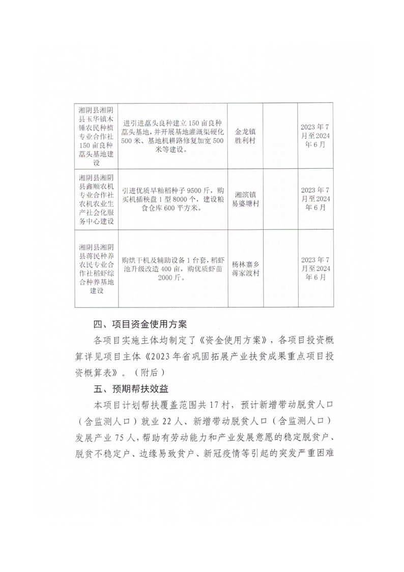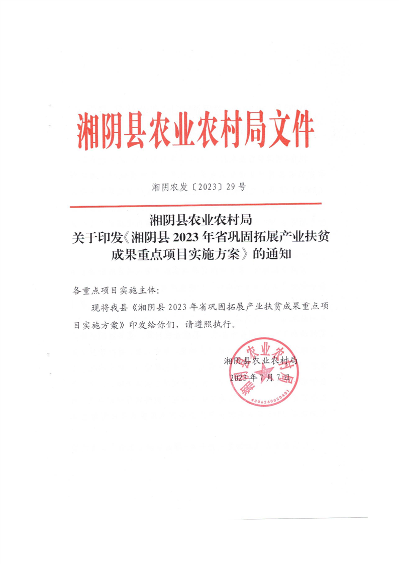 湘阴县农业农村局 关于印发《湘阴县2023年省巩固拓展产业扶贫成果重点项目实施方案》的通知