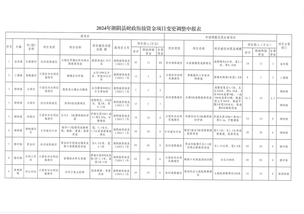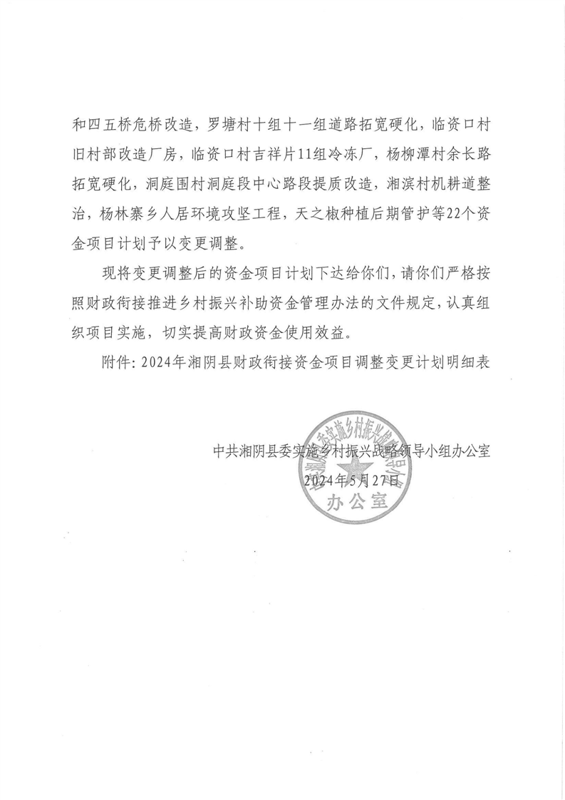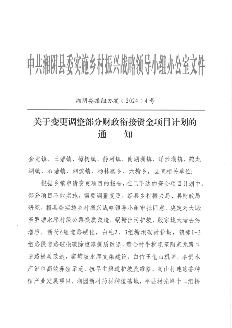 关于变更调整部分财政衔接资金项目计划的通知(湘阴委振组办发﹝2024﹞4号)
