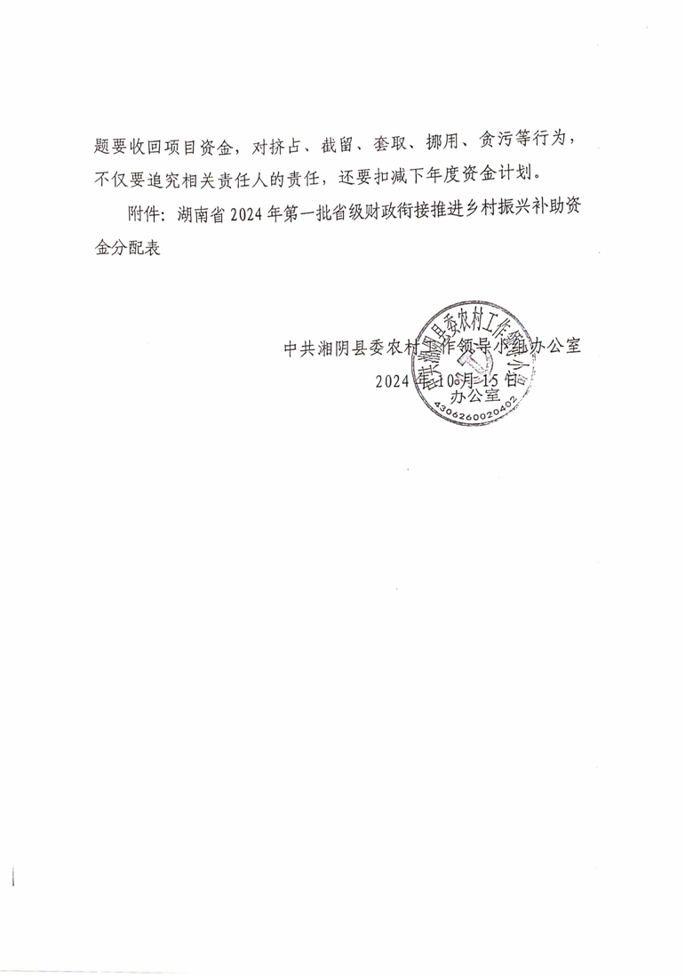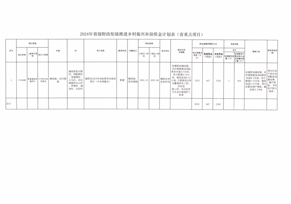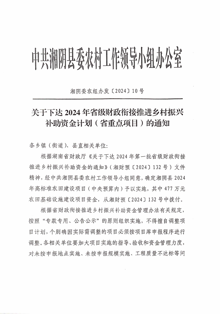 关于下达2024年省级财政衔接推进乡村振兴补助资金计划(省重点项目)的通知