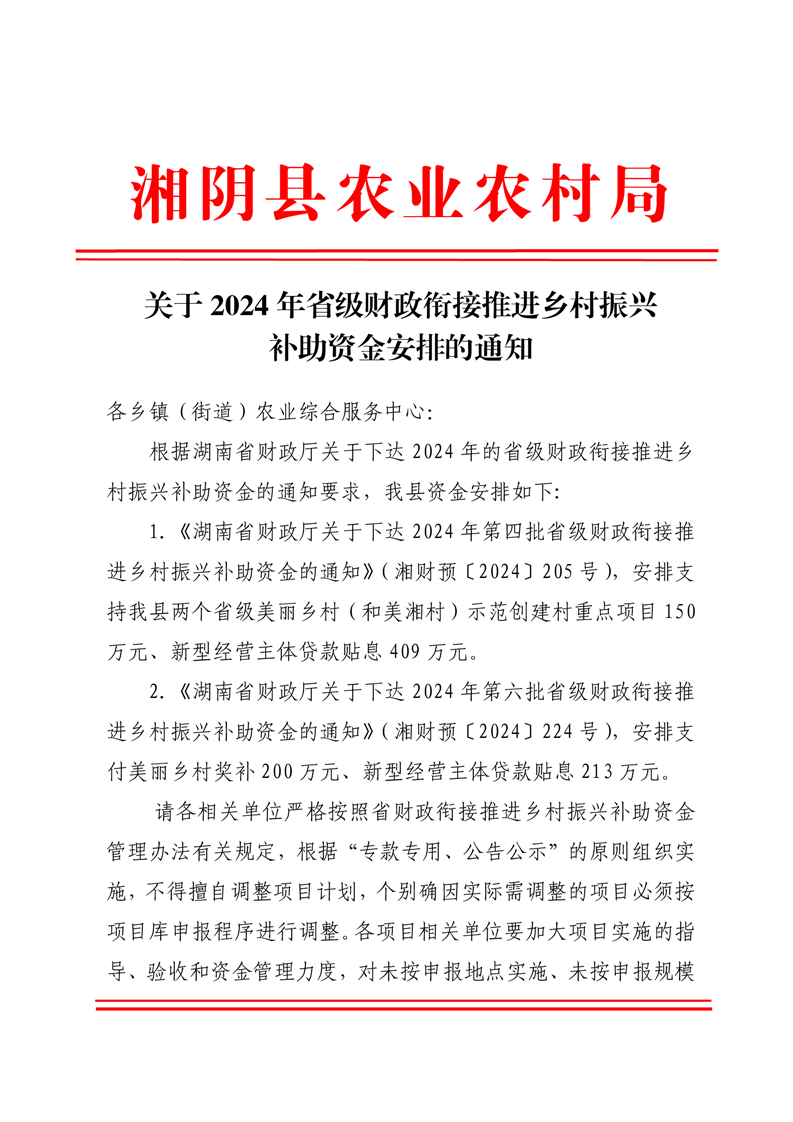 关于2024年省级财政衔接推进乡村振兴补助资金安排的通知