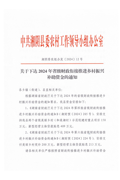 关于下达2024年省级财政衔接推进乡村振兴补助资金的通知