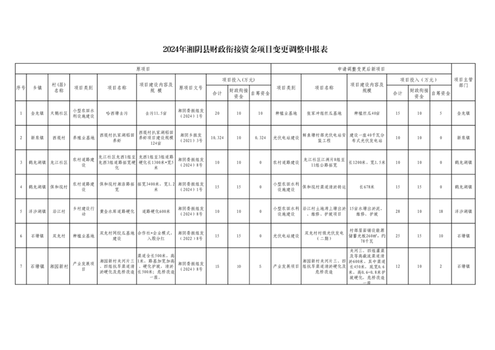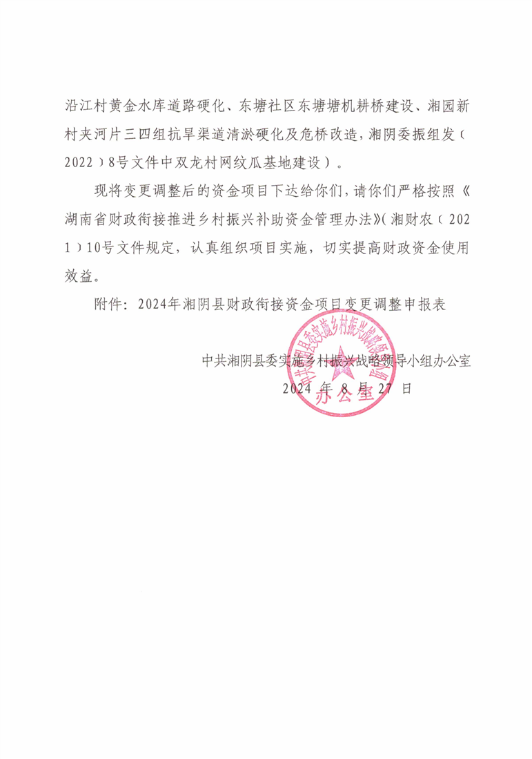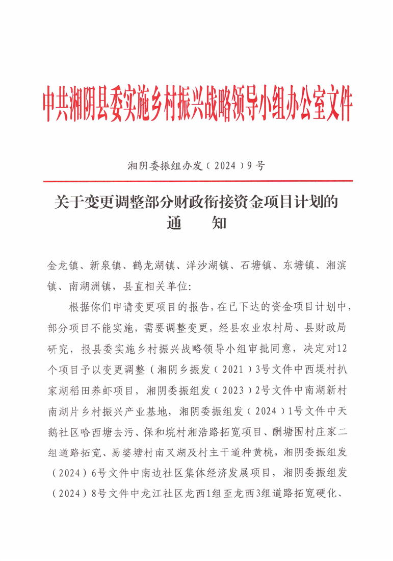 关于变更调整部分财政衔接资金项目计划的通知