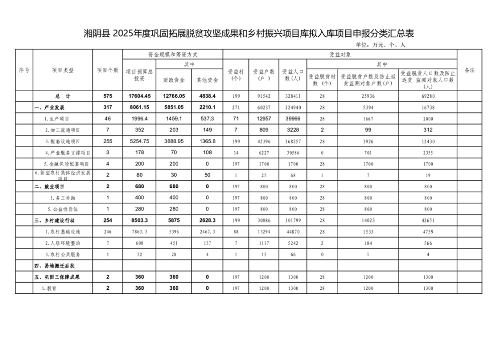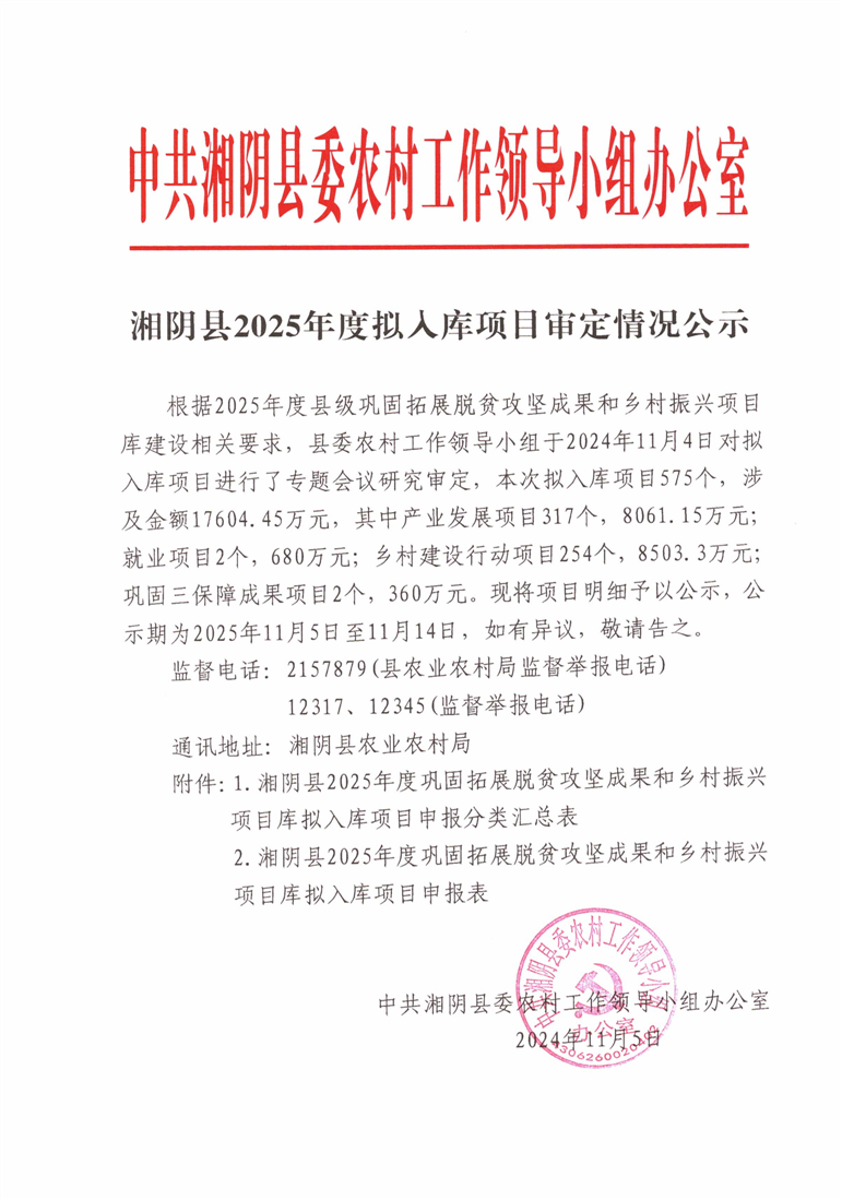 湘阴县2025年度拟入库项目审定情况公示