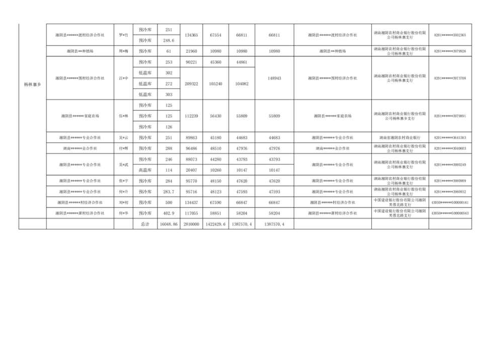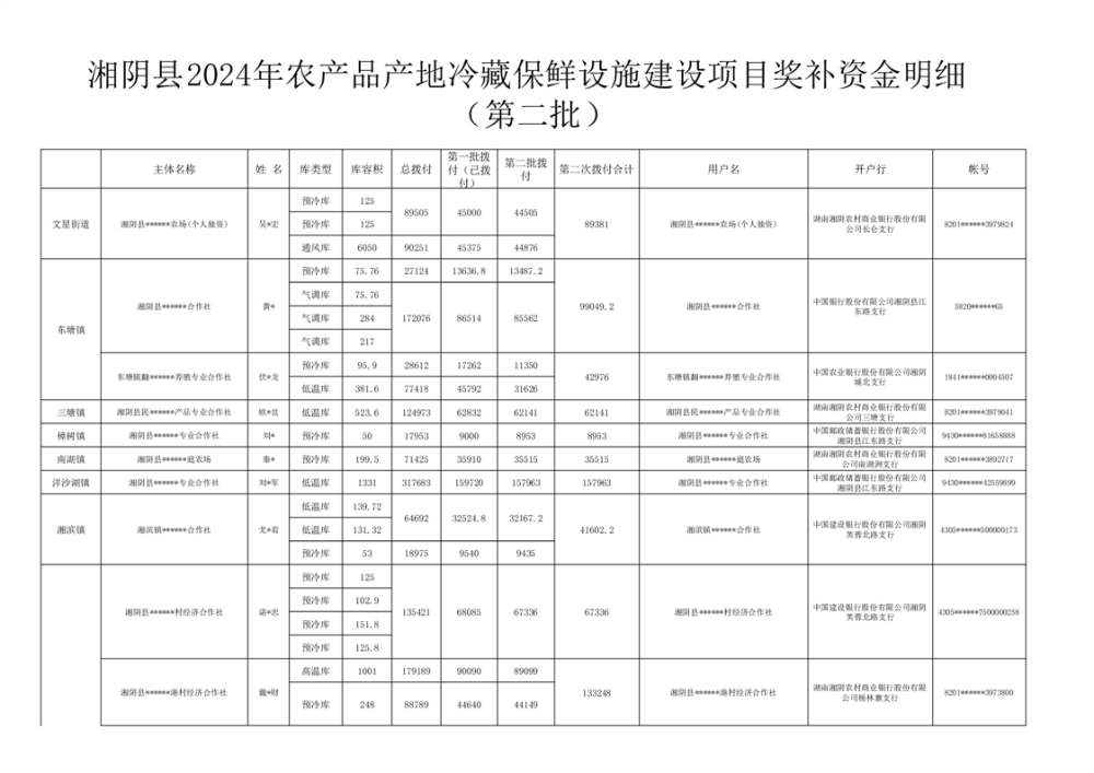 湘阴县2024年农产品产地冷藏保鲜设施建设项目奖补资金明细公示(第二批)