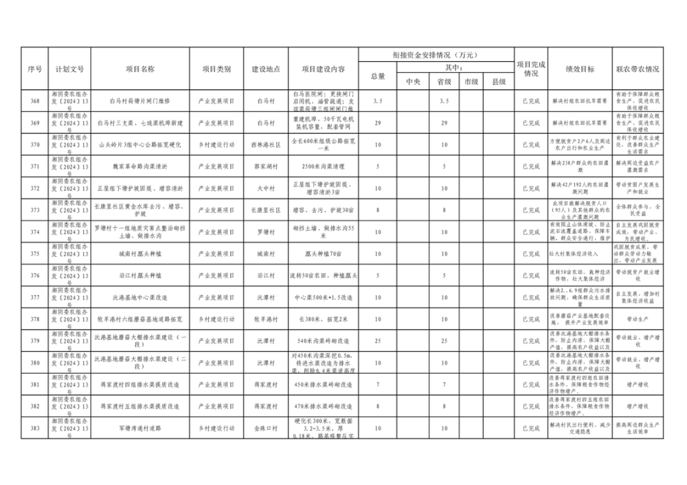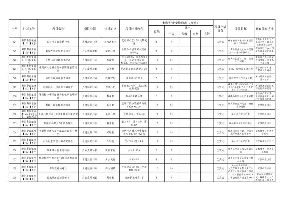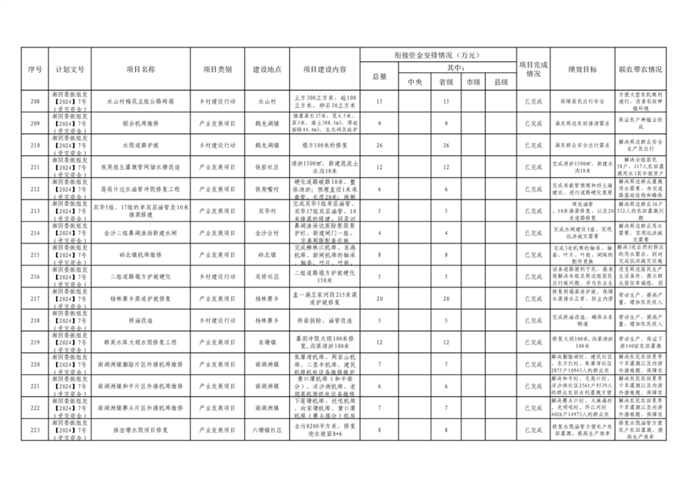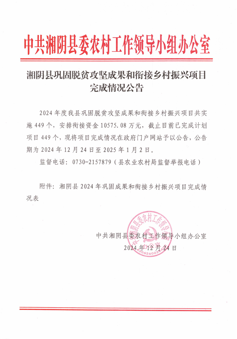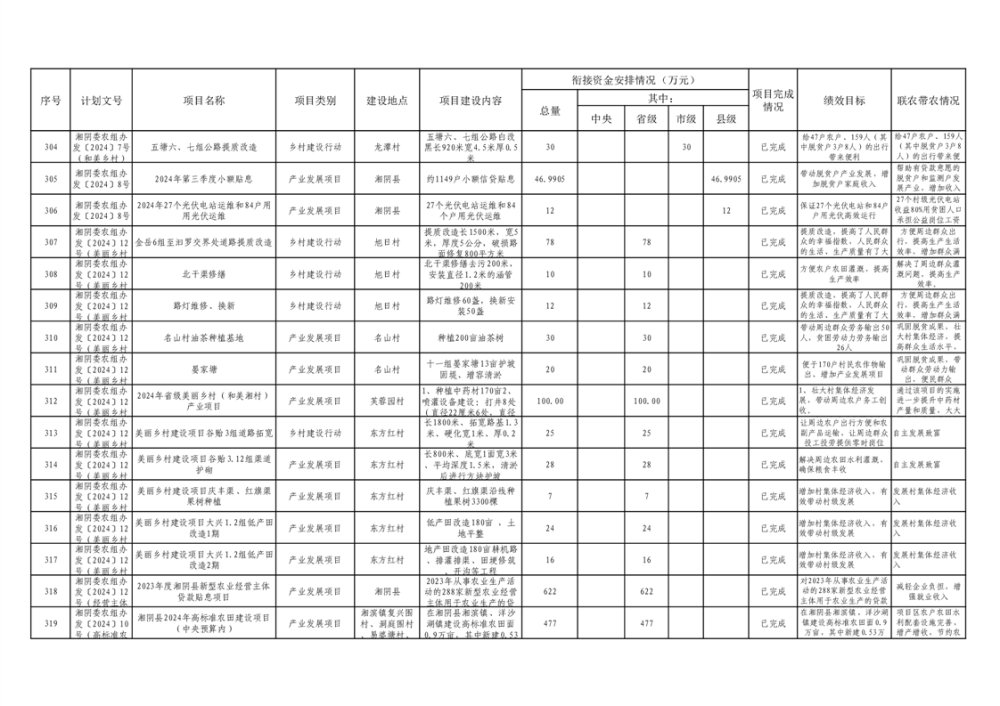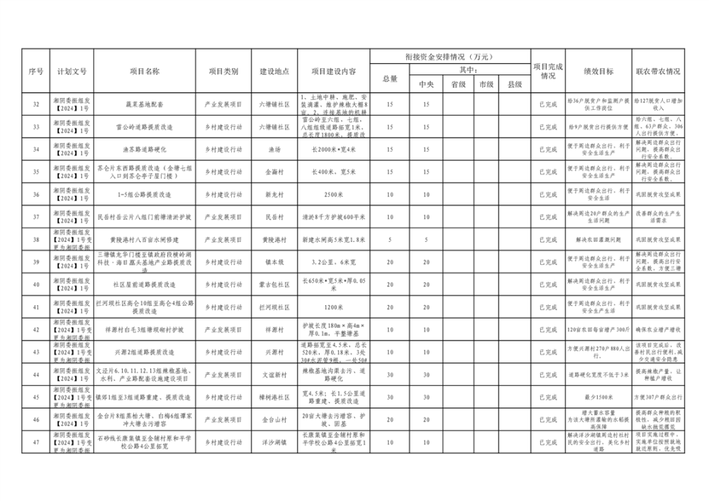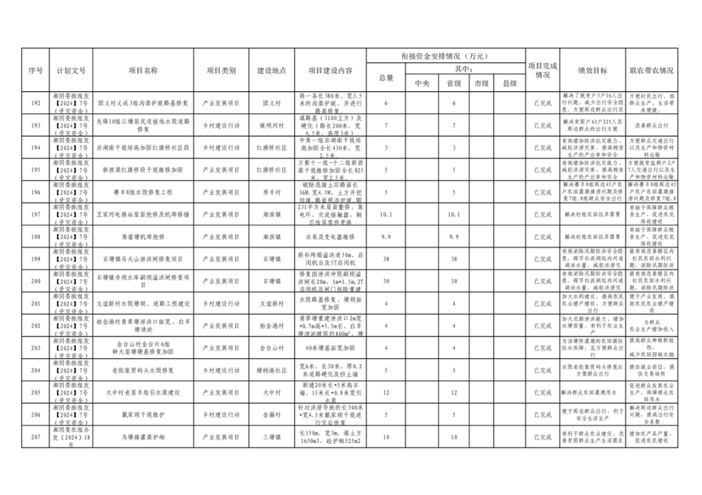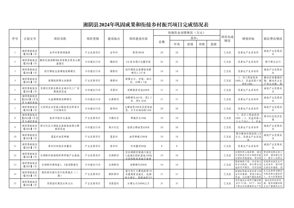 湘阴县巩固脱贫攻坚成果和衔接乡村振兴项目完成情况公告