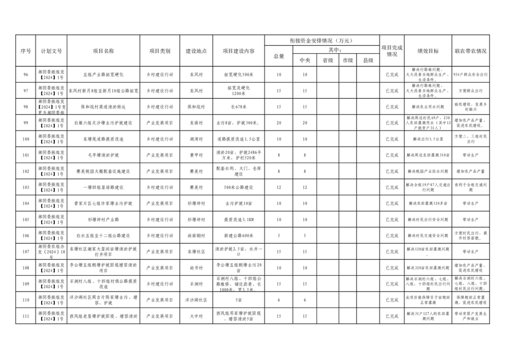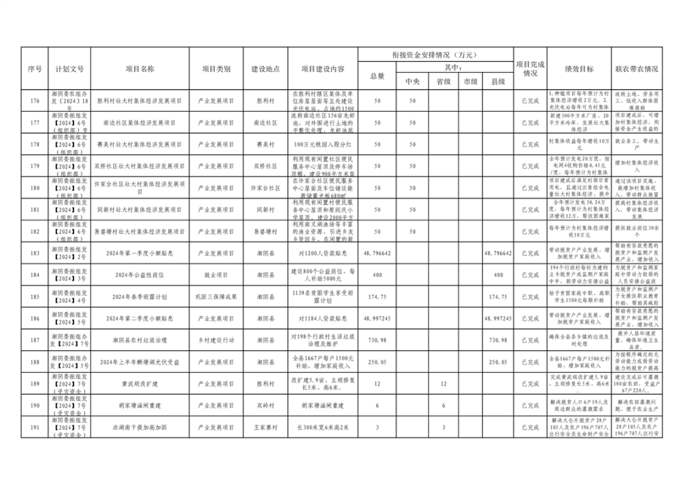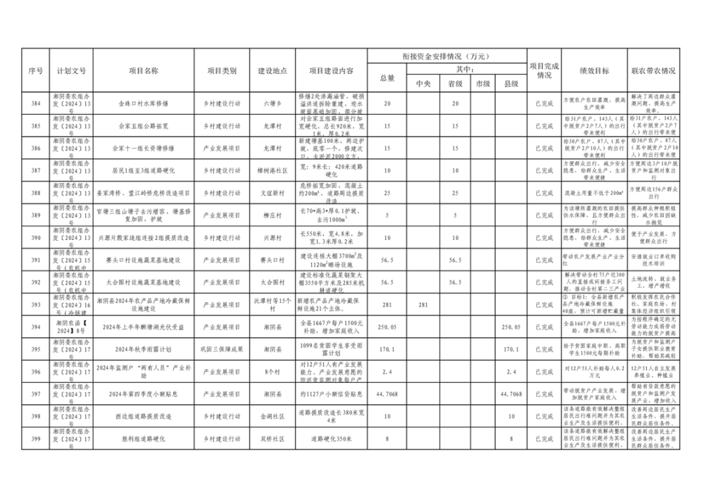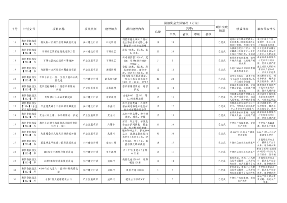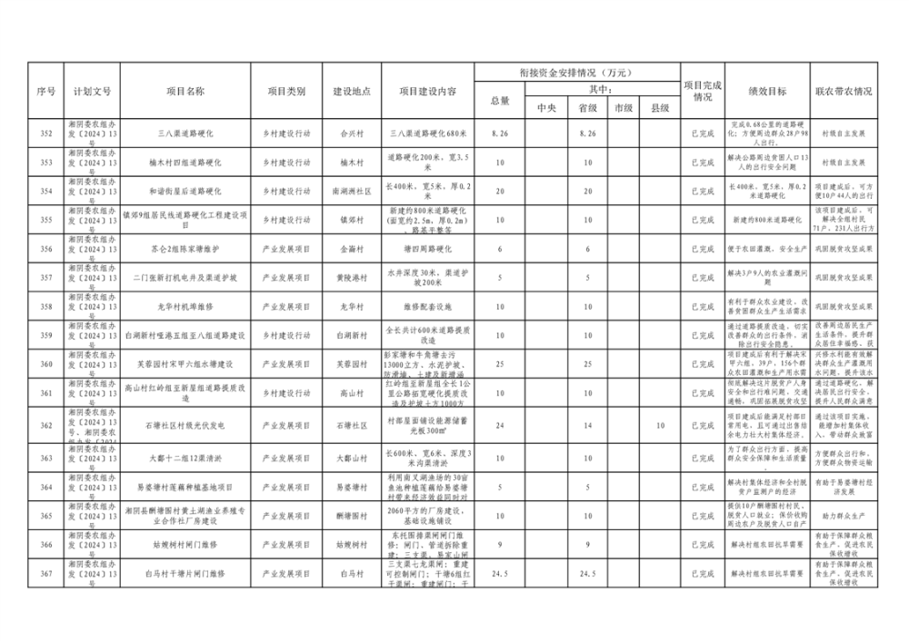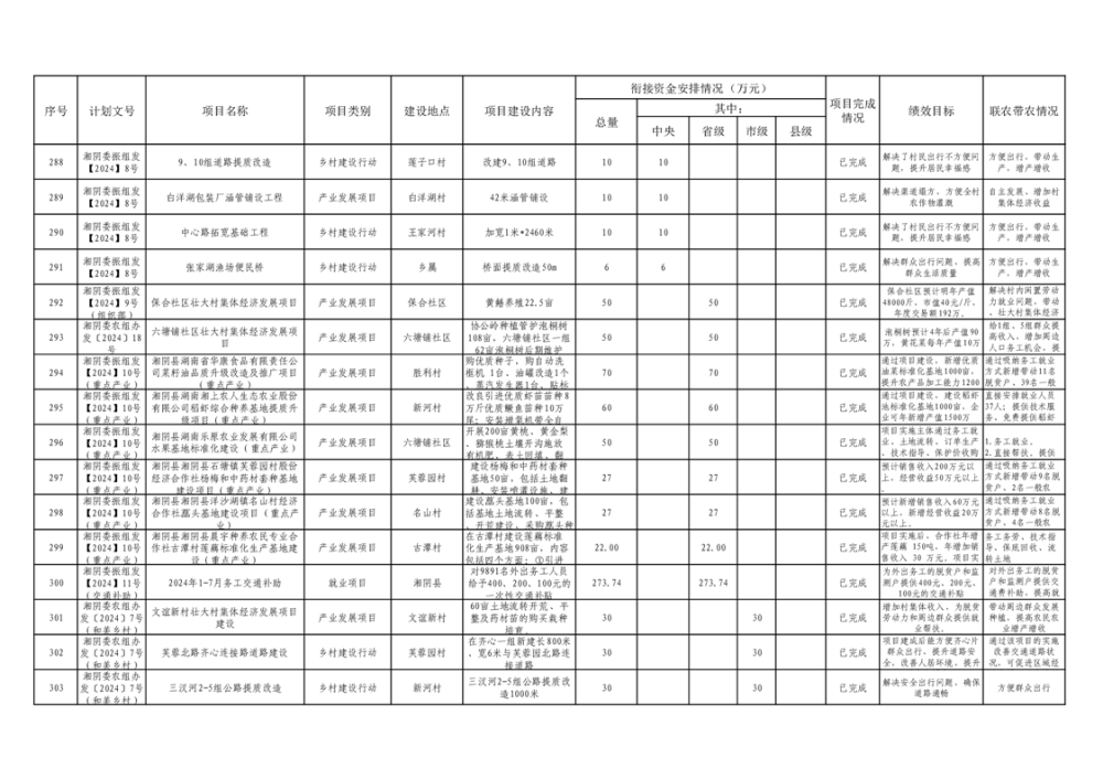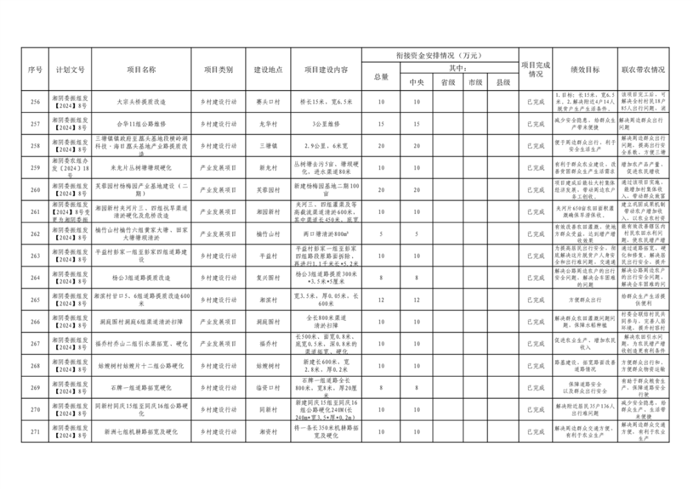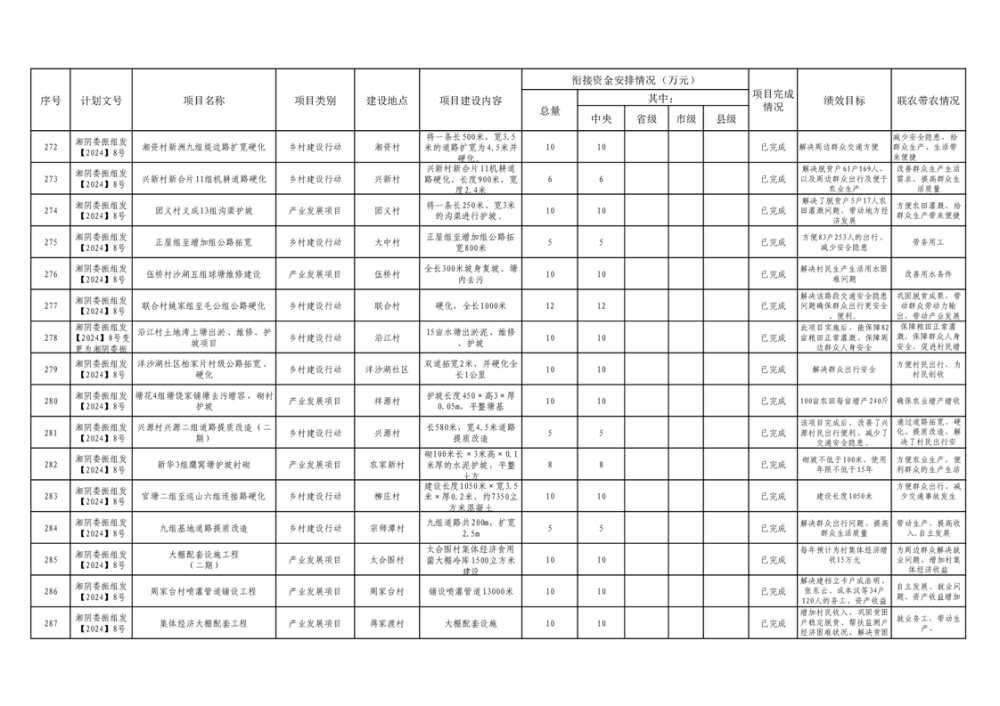 湘阴县巩固脱贫攻坚成果和衔接乡村振兴项目完成情况公告