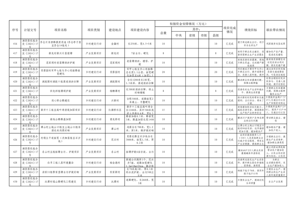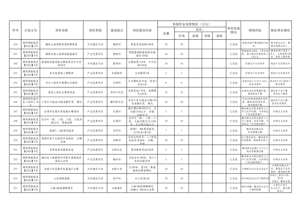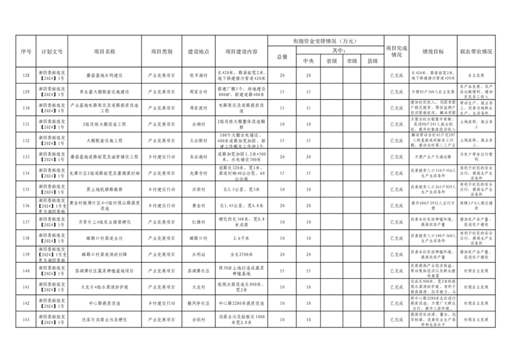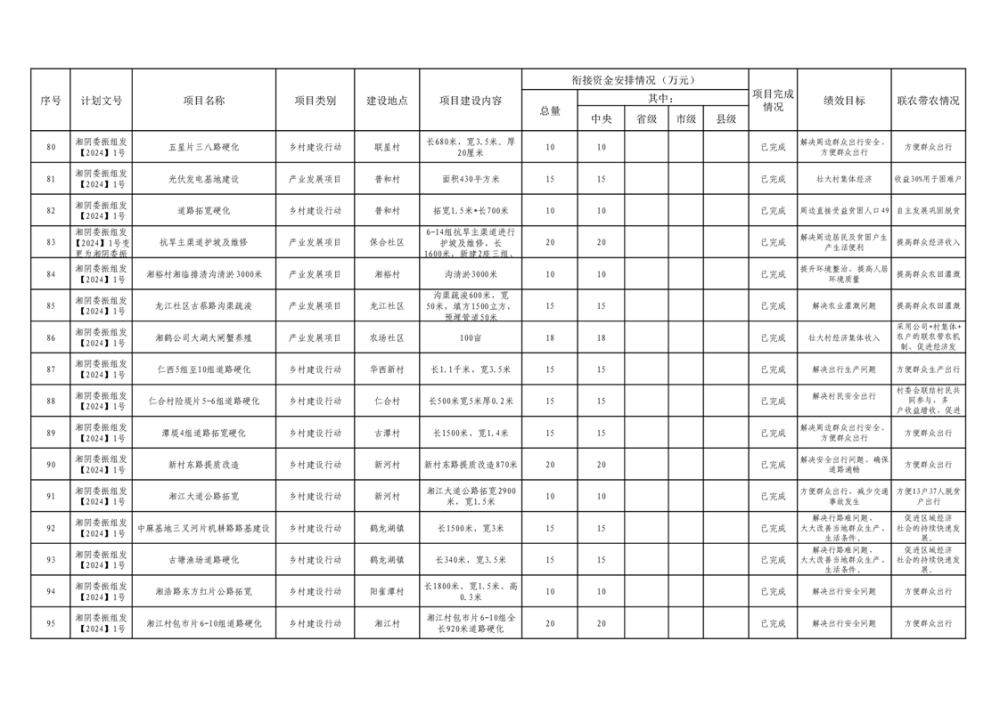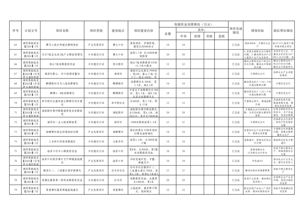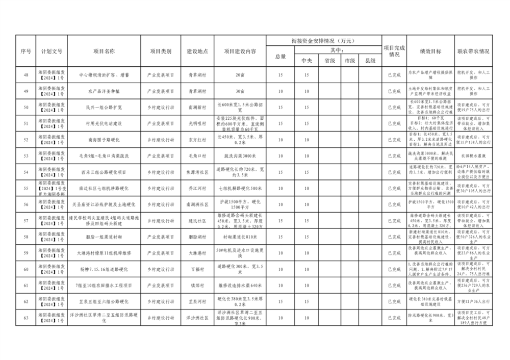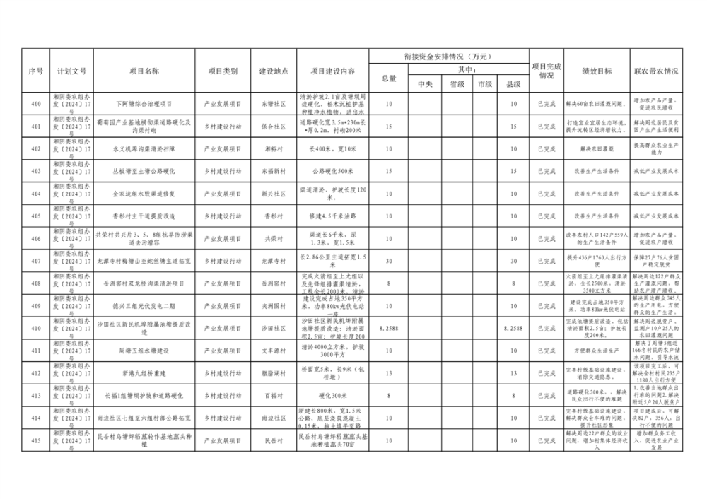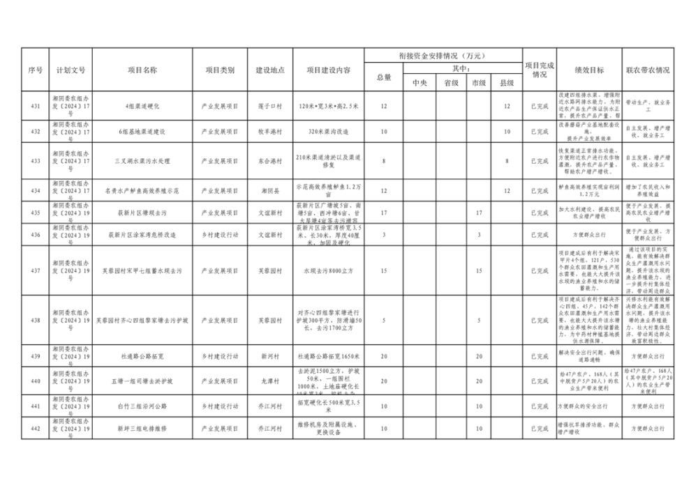 湘阴县巩固脱贫攻坚成果和衔接乡村振兴项目完成情况公告