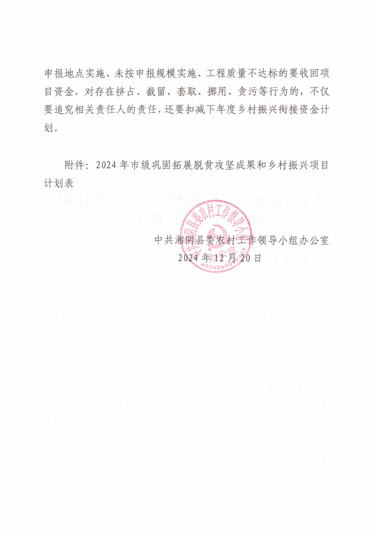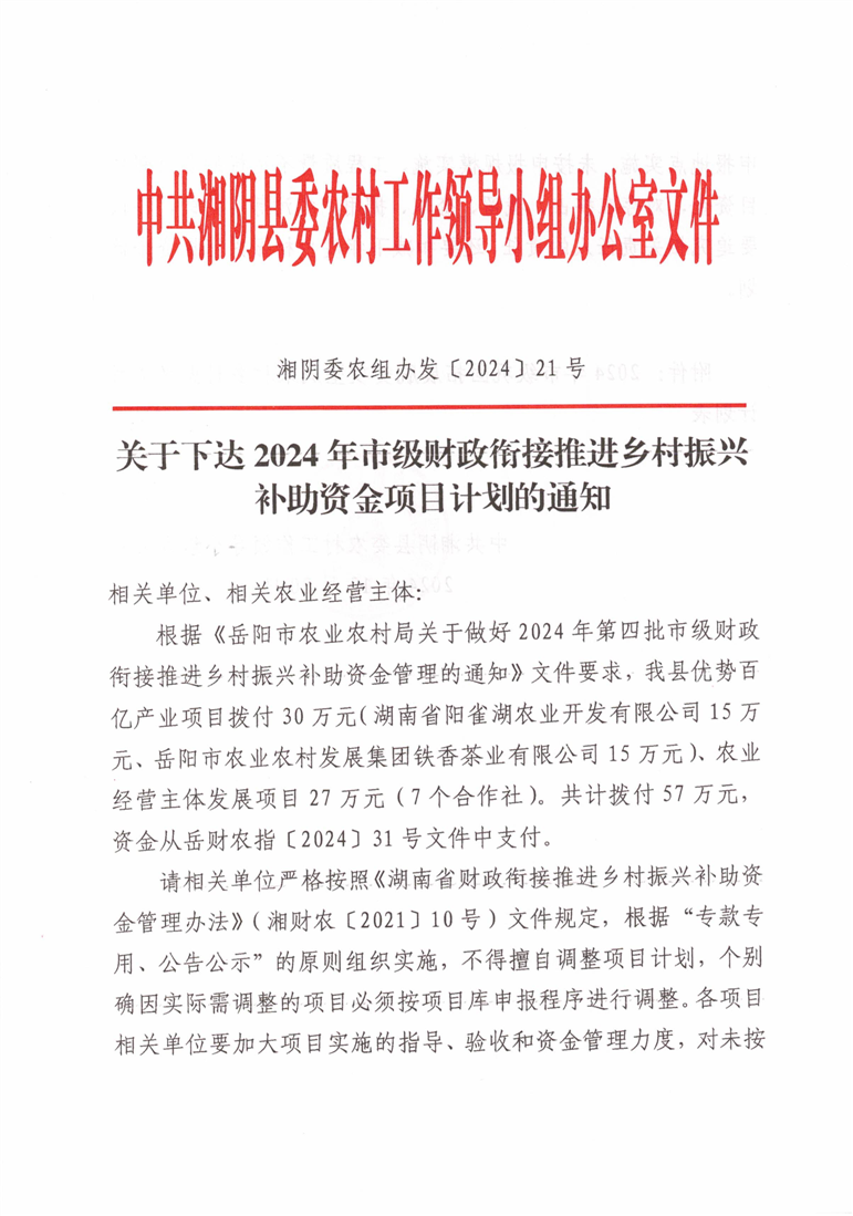 关于下达2024年市级财政衔接推进乡村振兴补助资金项目计划的通知公示