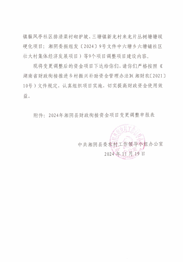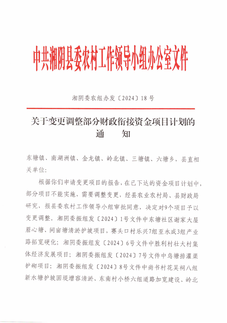 关于变更调整部分财政衔接资金项目计划的通知公示