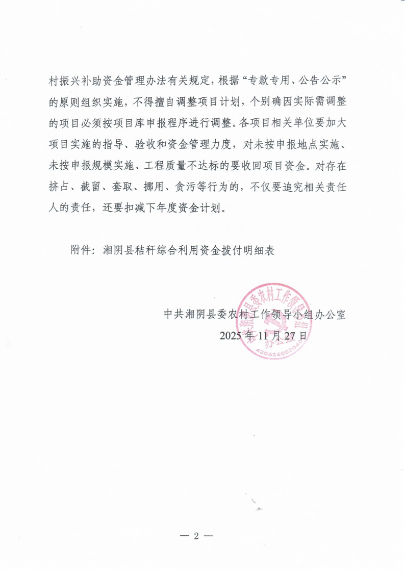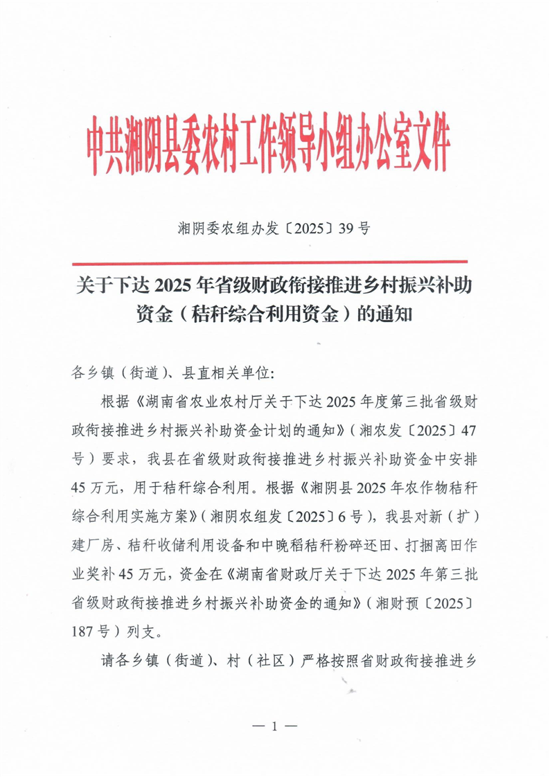 关于下达2025年省级财政衔接推进乡村振兴补助资金(秸秆综合利用资金)的通知