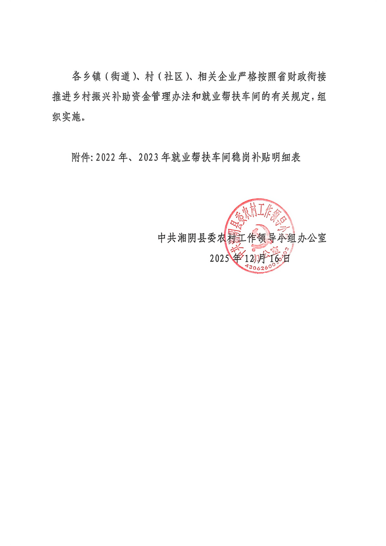 关于下达2025年县级财政衔接推进乡村振兴补助资金(就业帮扶车间)计划的通知