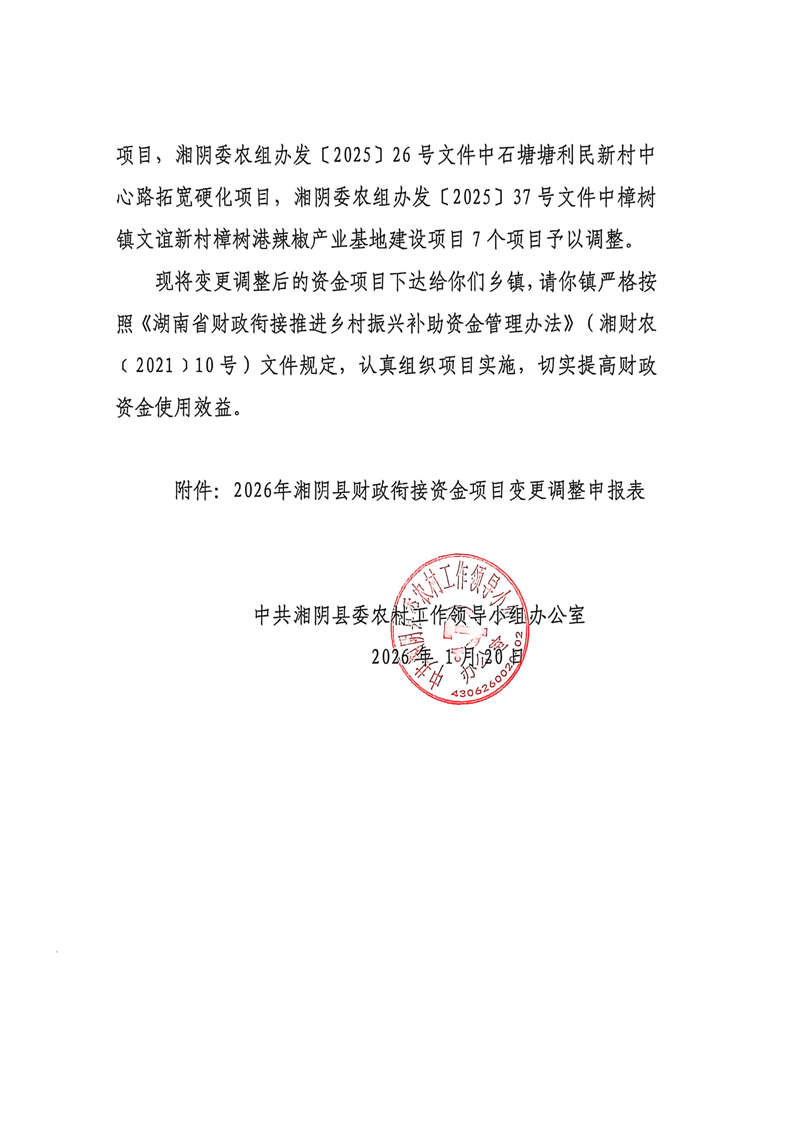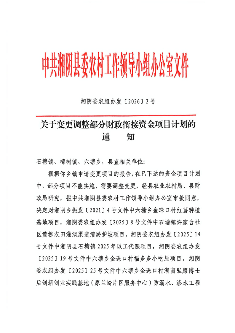 关于变更调整部分财政衔接资金项目计划的通知