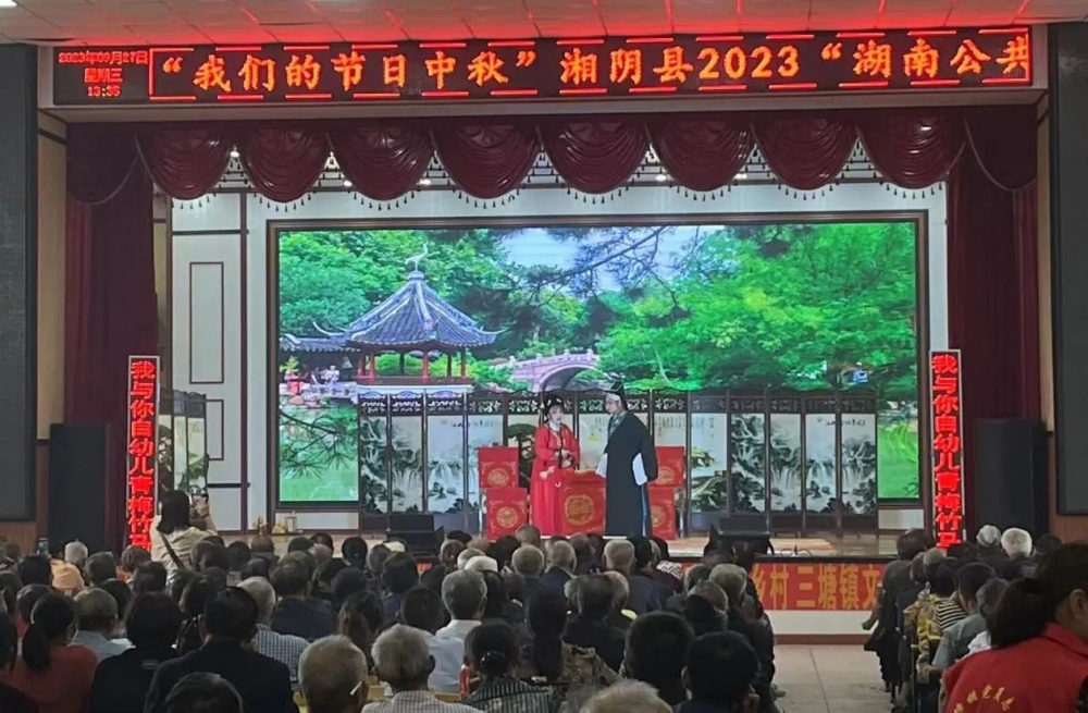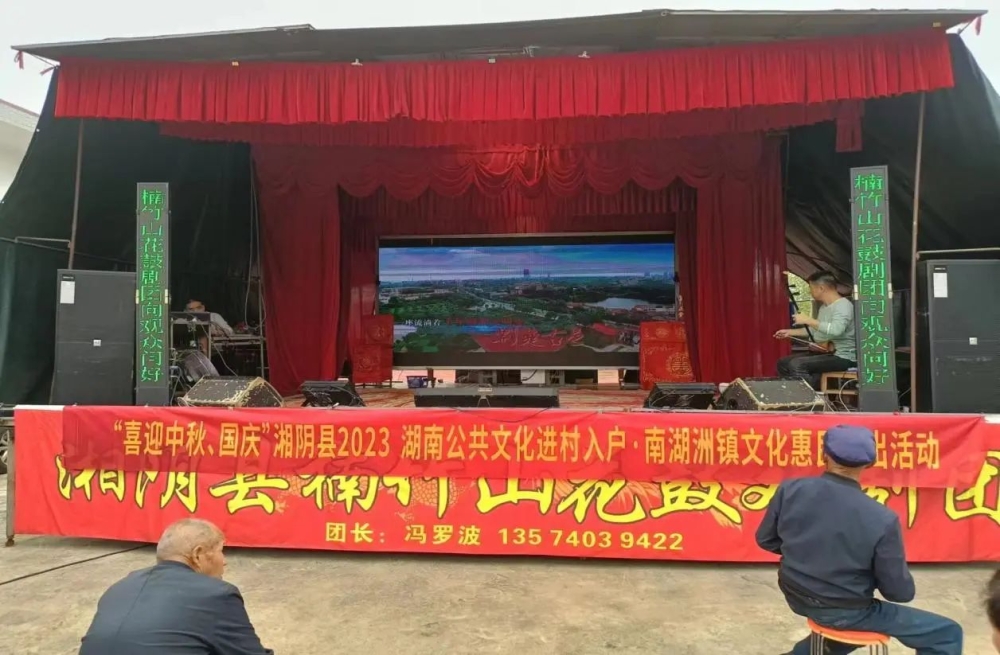 金秋时节,凉风送爽。为弘扬中华优秀传统文化,丰富辖区村民精神文化生活,促进邻里和谐,9月27-28日,湘阴县文旅广体局与三塘镇、南湖洲镇人民政府联合开展了“我们的节日喜迎中秋、国庆”湘阴县2023“湖南公共文化进村入户-送戏曲进乡村文化惠民演出”活动,为村民们献上一份精彩丰盛的文化大餐。 ▲三塘镇白雪村 这次送戏下乡活动在三塘镇白雪村和南湖洲镇百福村举行。湖南星城花鼓戏剧团和湘阴县楠竹山花鼓戏剧团演绎《王文虎卖柴》《龙泉剑》《访南京》《鸳鸯扇》等经典名段,现场气氛热烈,掌声不断。熟悉的曲调让村民们瞬间产生共鸣,有些戏迷在不知不觉中跟着哼唱起来。