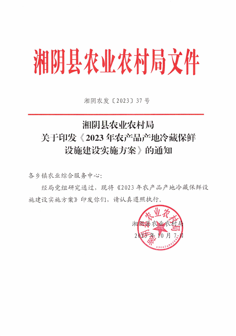 湘阴县农业农村局2023年农产品产地冷藏保鲜设施建设实施方案